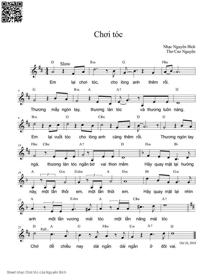 Nguyên Bích Em lại chơi tóc Cho lòng anh thêm rối Thương mấy ngón tay [PDF] [Sheet] [Lyrics] [Mp4/Midi]