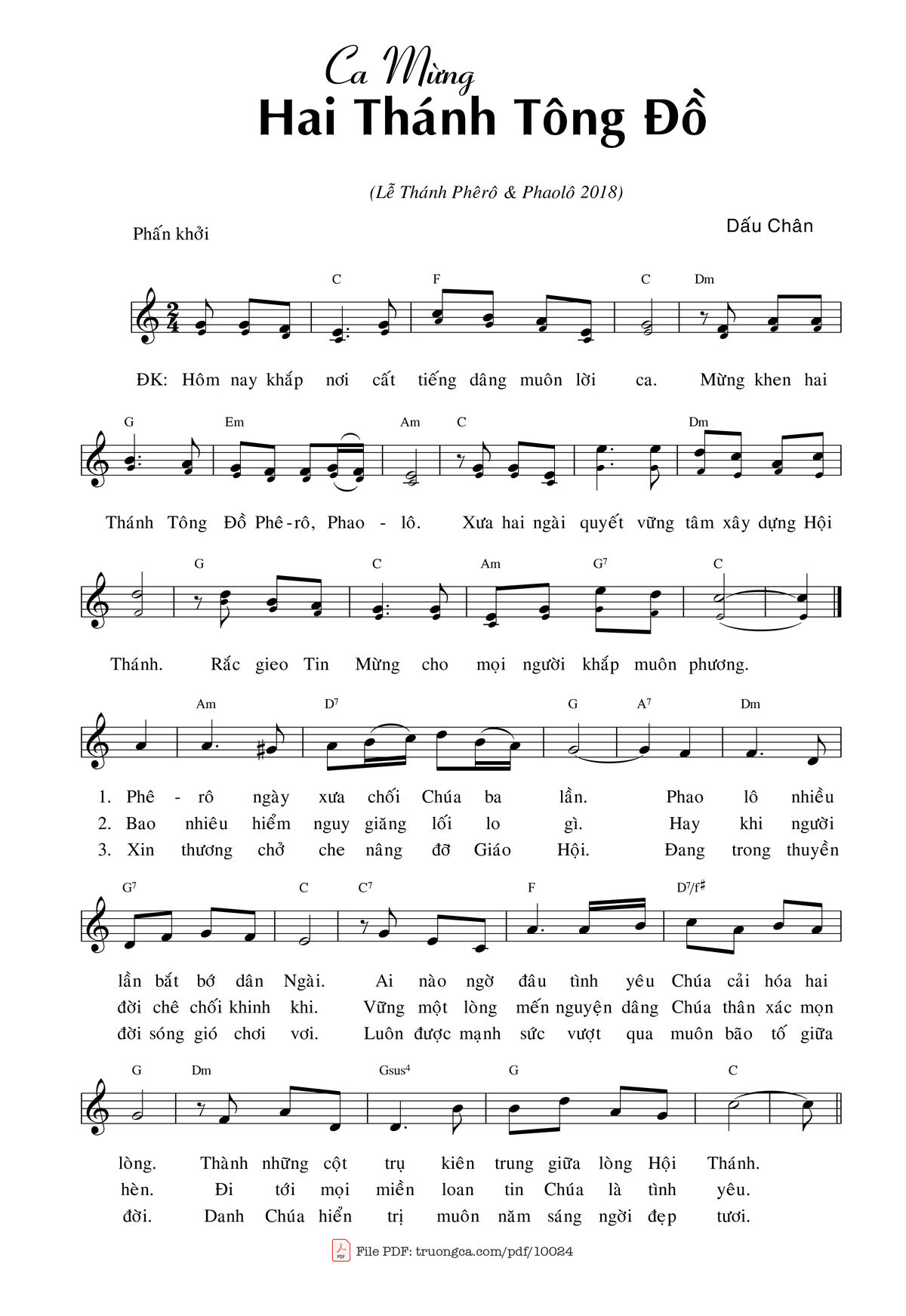 More similar sheets PDF Ca Mừng Hai Thánh Tông đồ: