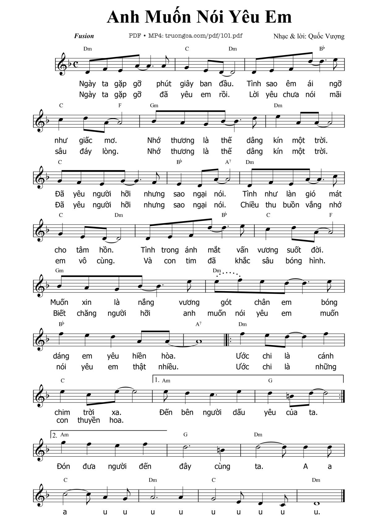 Quốc Vượng Ngày ta gặp gỡ phút giây ban đầu Tình sao êm ái ngỡ như giấc mơ [PDF] [Sheet] [Lyrics] [Mp4/Midi]