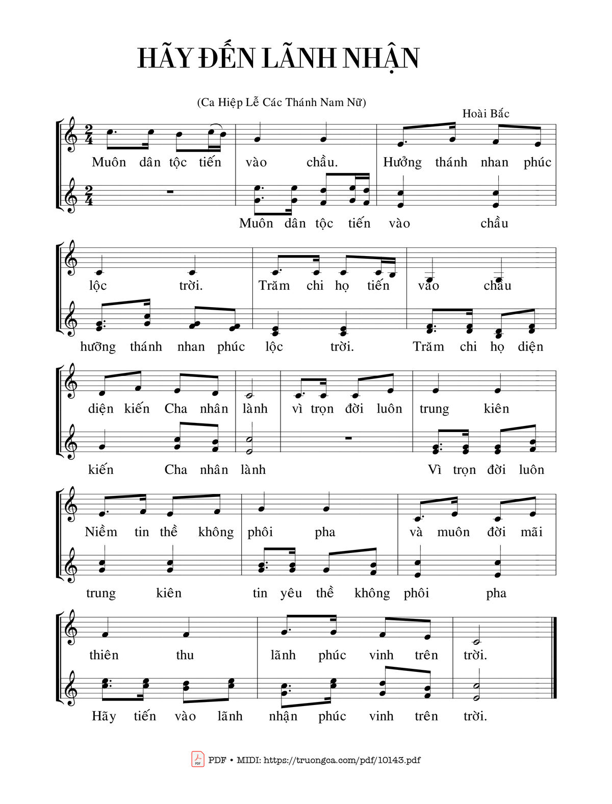 Hoài Bắc Muôn dân tộc tiến vào chầu Hưởng thánh nhan phúc lộc trời [PDF] [Sheet] [Lyrics] [Mp4/Midi]