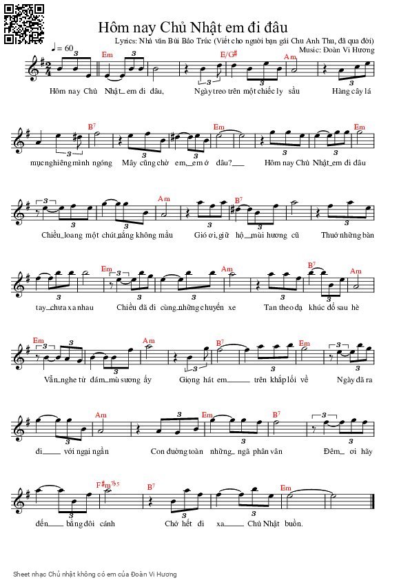 Đoàn Vi Hương Hôm nay chủ nhật em đi đâu Ngày treo trên một chiếc ly sầu [PDF] [Sheet] [Lyrics] [Mp4/Midi]