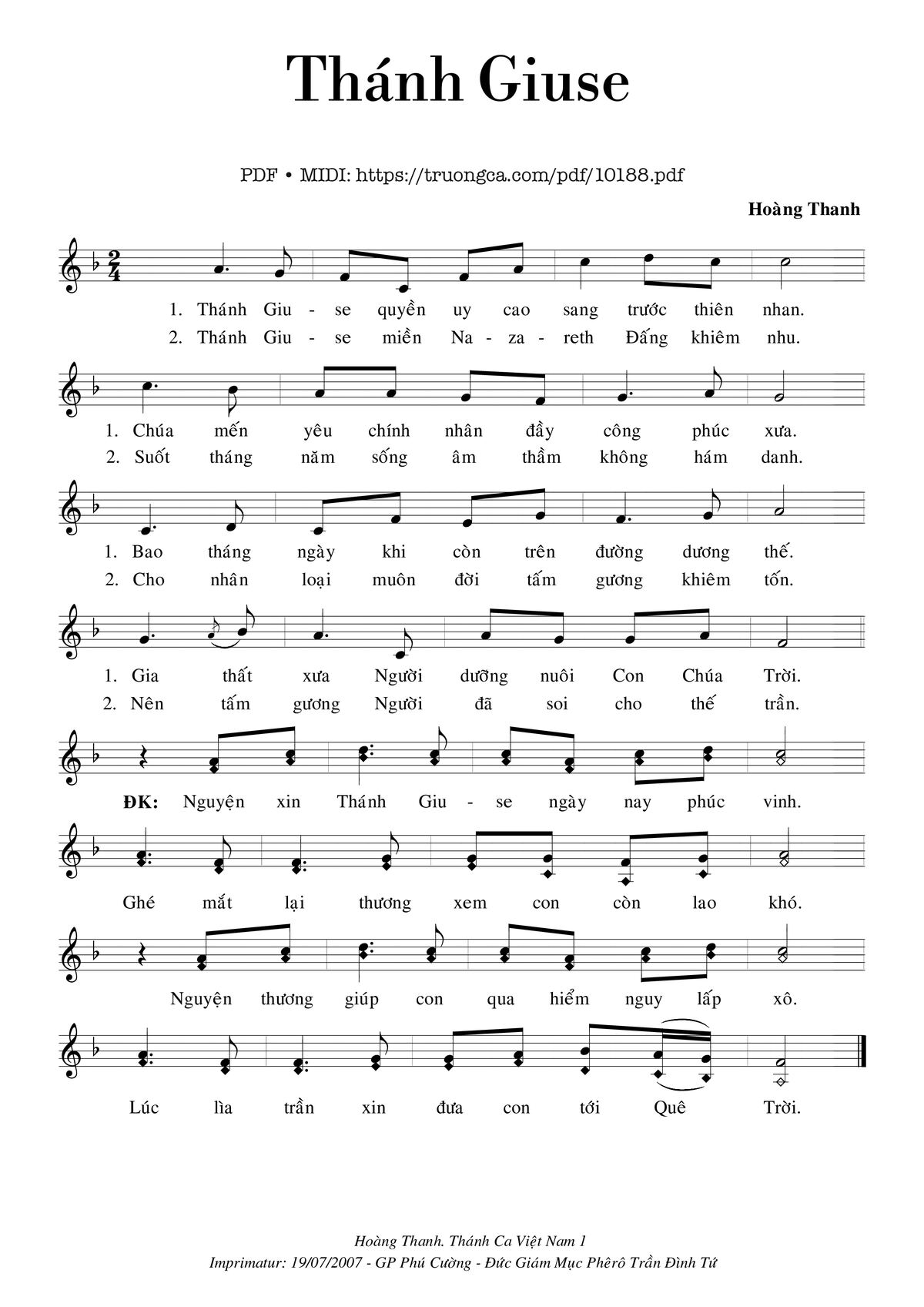 Hoàng Thanh Thánh Giuse quyền uy cao sáng trước thiên nhan [PDF] [Sheet] [Lyrics] [Mp4/Midi]
