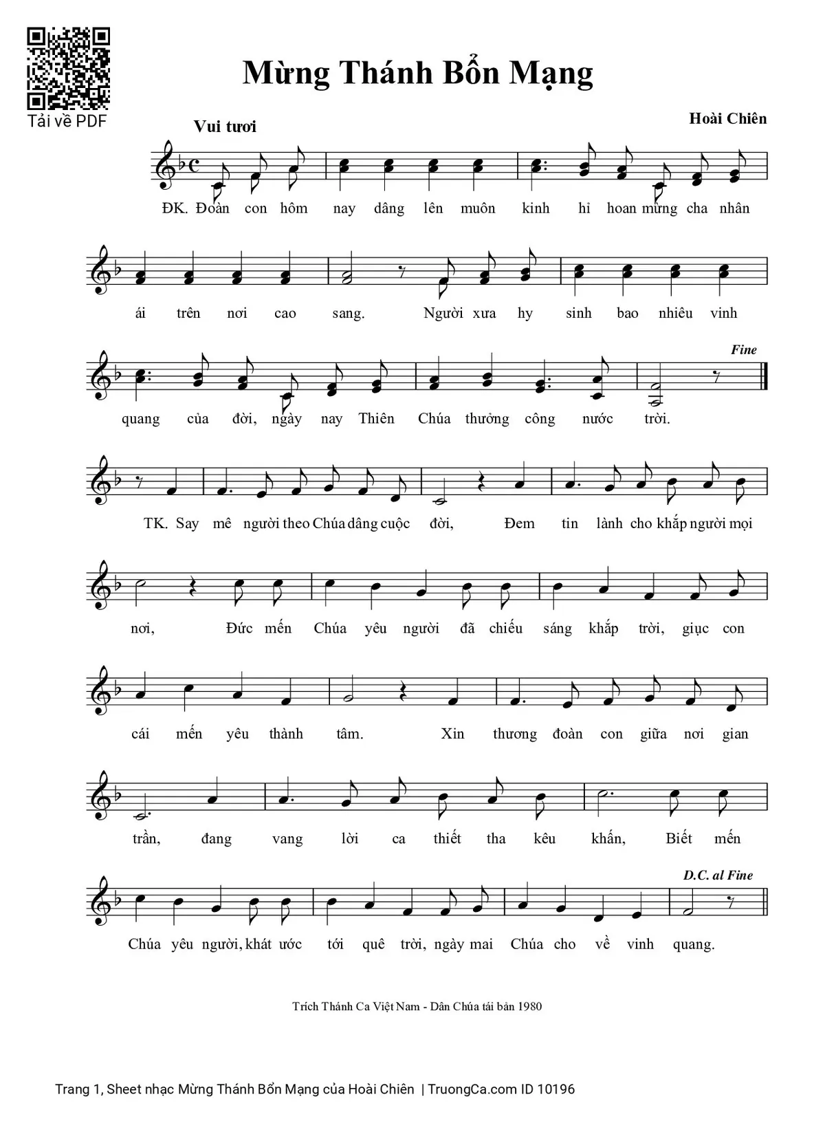 More similar sheets PDF Mừng Thánh Bổn Mạng: