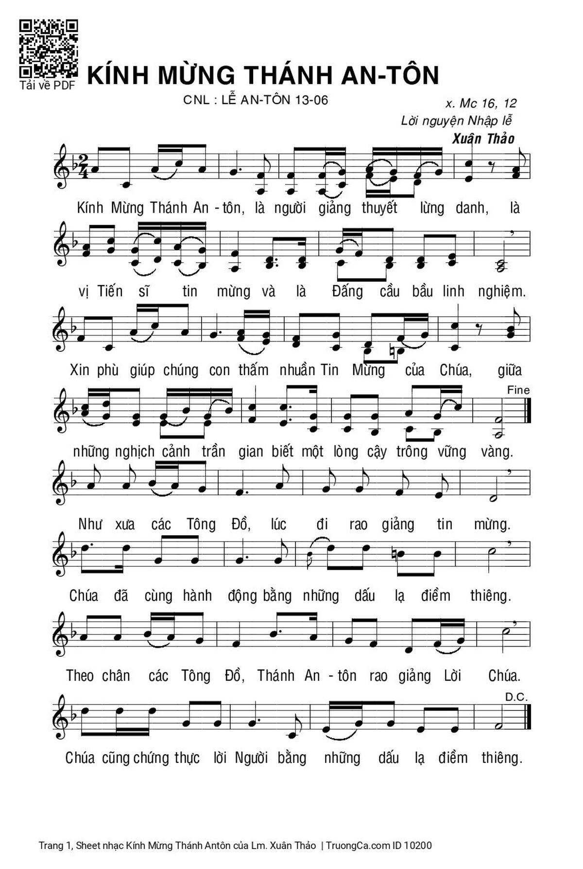 More similar sheets PDF Kính Mừng Thánh Antôn: