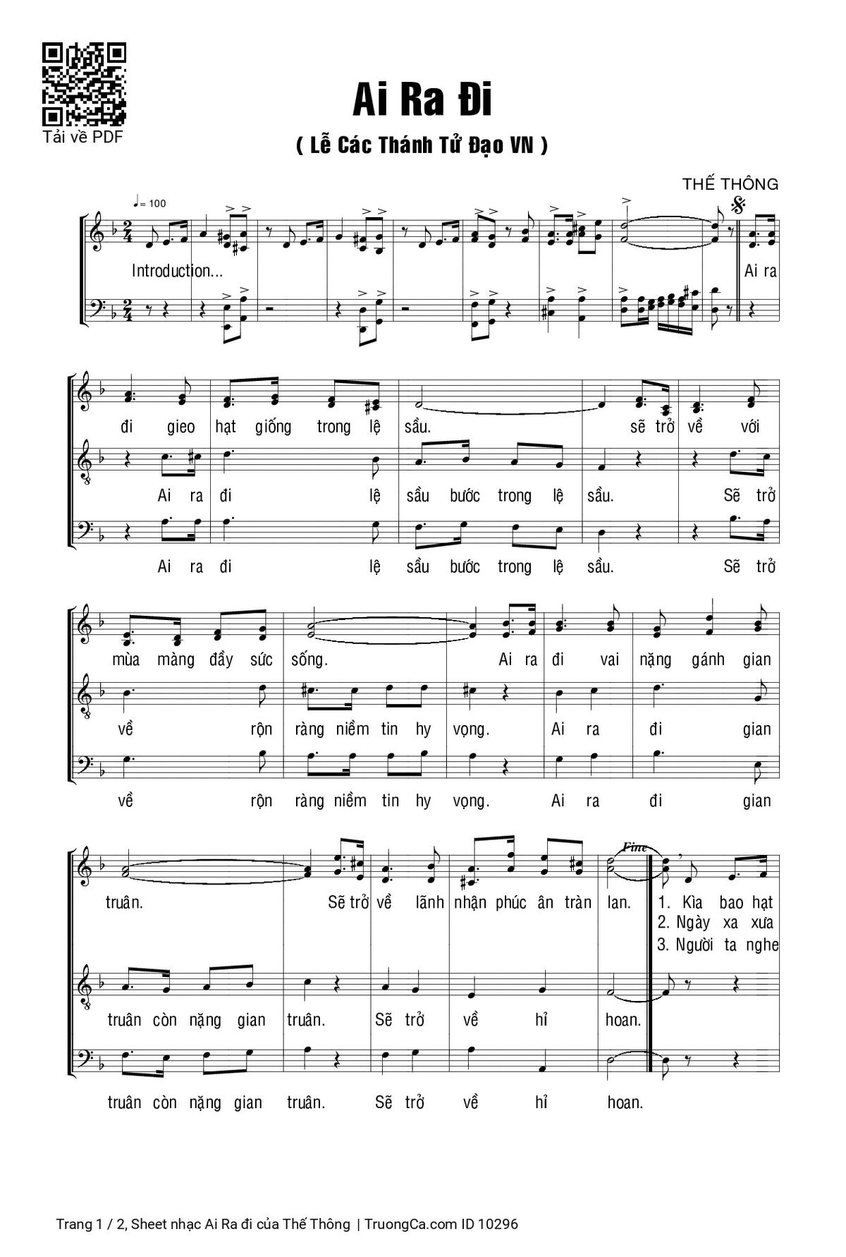 Điệp khúc: Ai ra đi gieo hạt giống trong lệ sầu, sẽ trở về với mùa màng đầy sức sống. Ai ra đi vai năạng gánh gian truân, sẽ trở về lãnh nhận phúc ân tràn lan