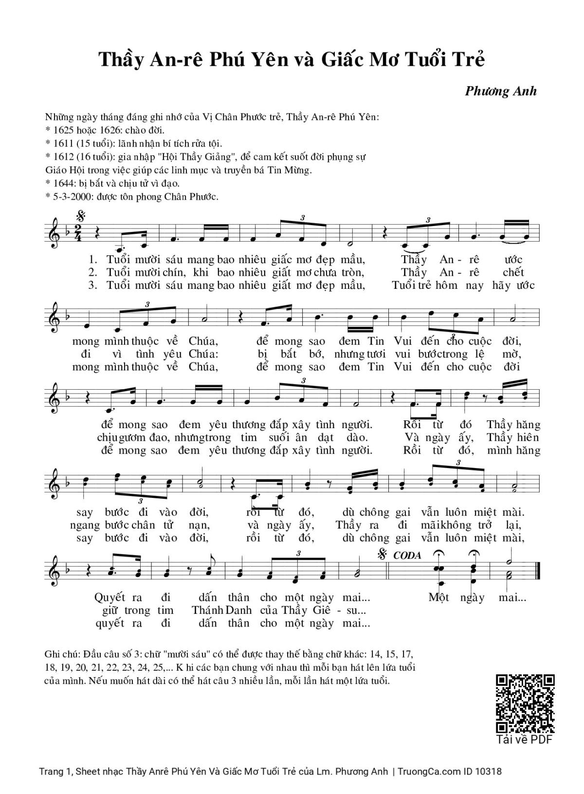 More similar sheets PDF Thầy Anrê Phú Yên Và Giấc Mơ Tuổi Trẻ:
