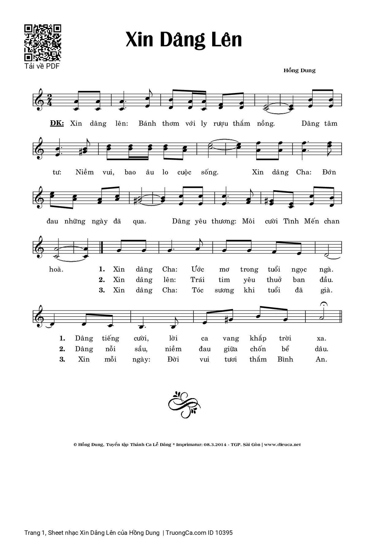 Transposition is the process of moving a song's melody and chords up or down in pitch by a constant interval. The direction of the transposition tool is indicated by a plus (+) sign for up and a minus (-) sign for down. Hover mouse over chords signs to see the chords chart of Xin Dâng Lên song.