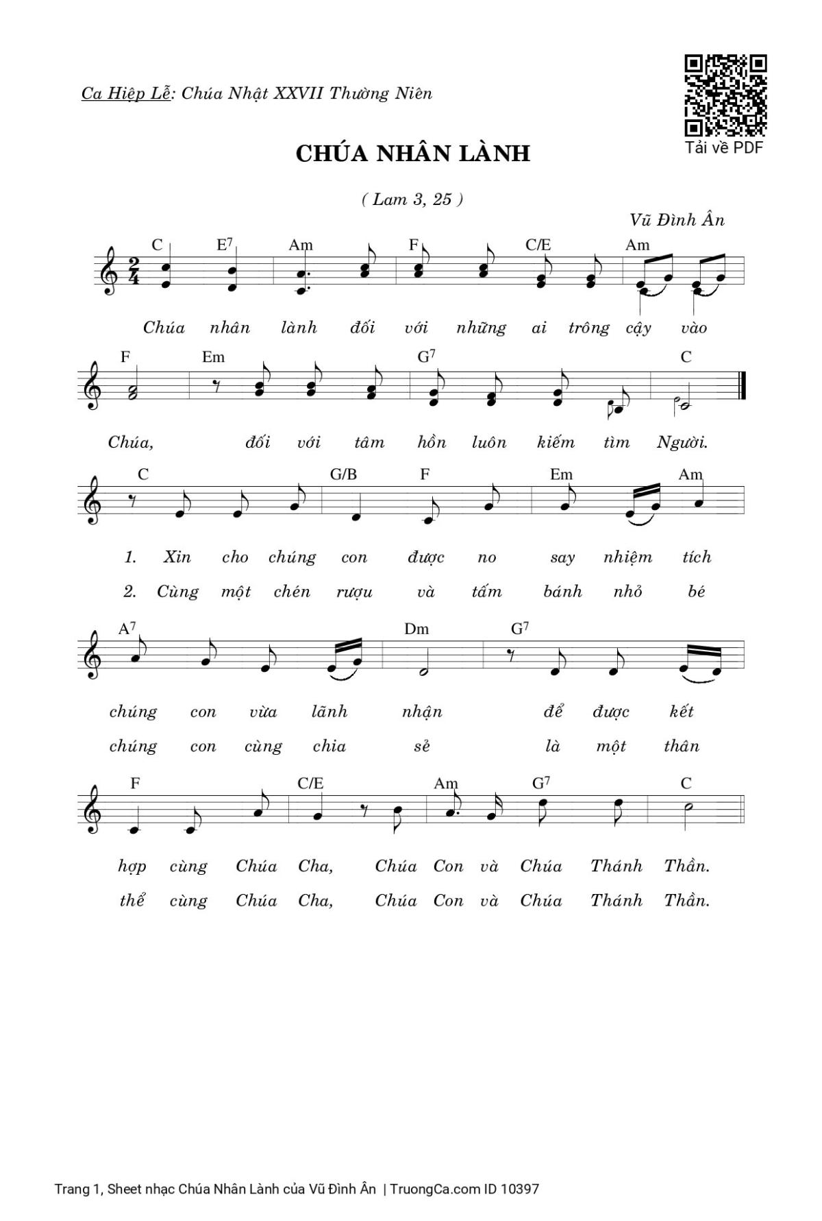 Vũ Đình Ân Hiệp Lễ Chúa Nhật Thường Niên Chúa nhân lành đối với những ai trông cậy vào Chúa [PDF] [Sheet] [Lyrics] [Mp4/Midi]