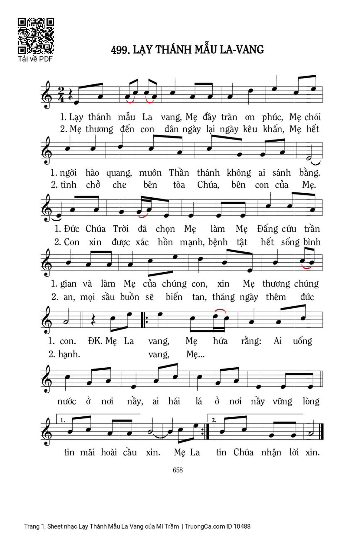 Mi Trầm Lạy Thánh Mẫu La Vang Mẹ đầy tràn ơn phúc [PDF] [Sheet] [Lyrics] [Mp4/Midi]