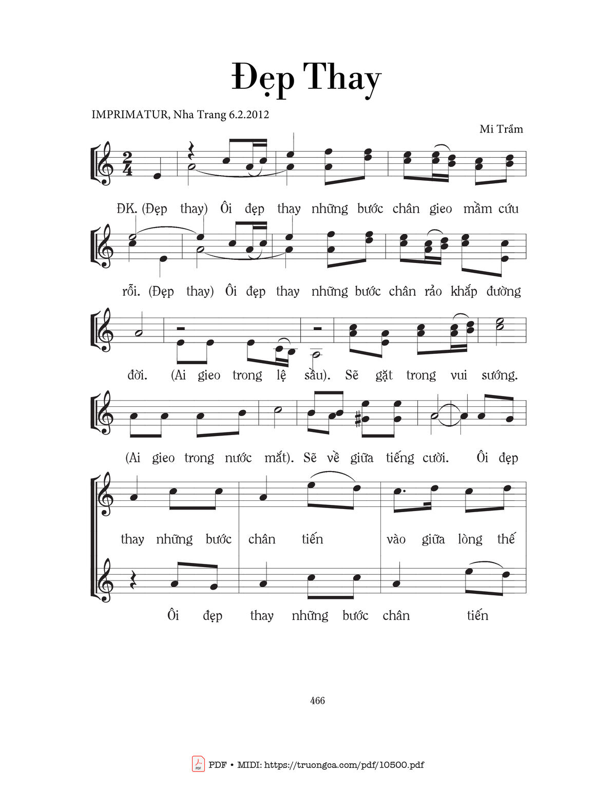 Mi Trầm Ôi đẹp thay những bước chân gieo mầm cứu rỗi [PDF] [Sheet] [Lyrics] [Mp4/Midi]