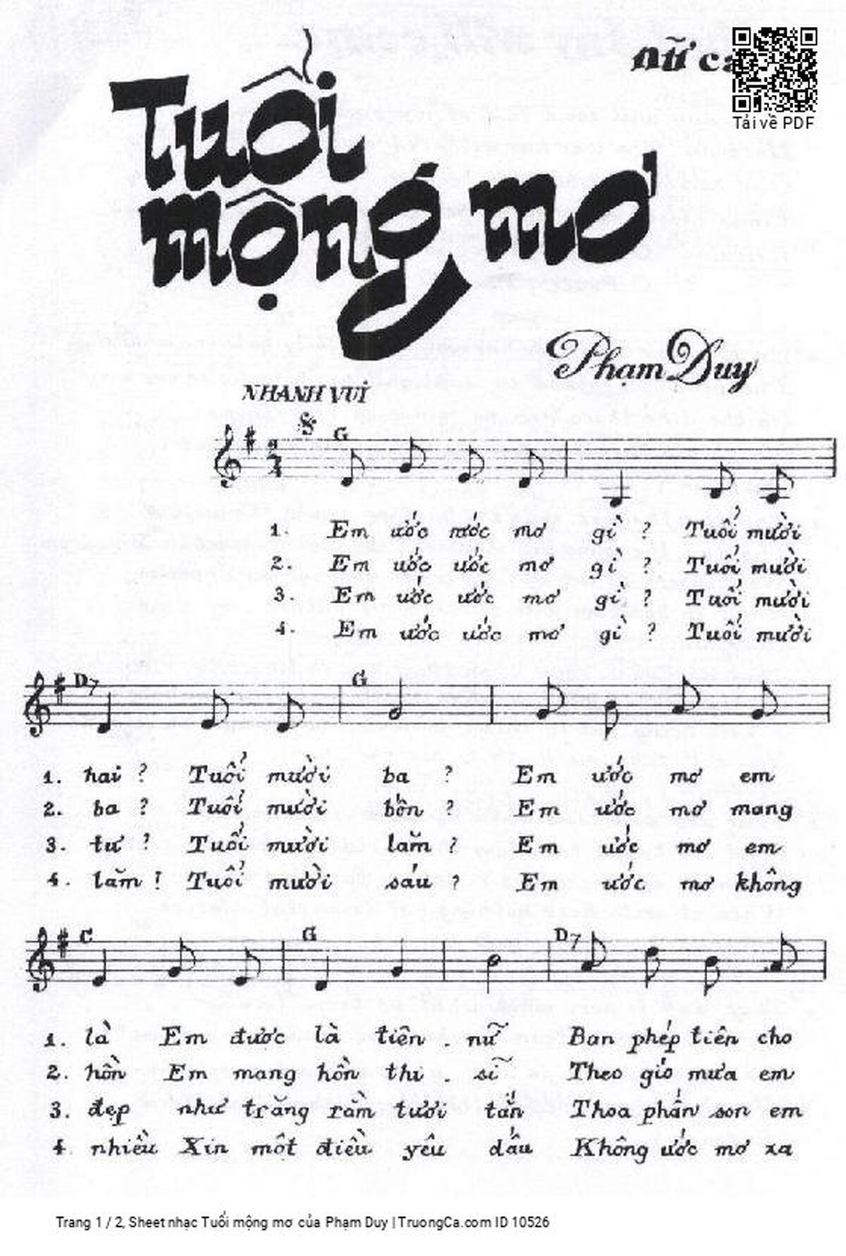 More similar sheets PDF Tuổi mộng mơ :