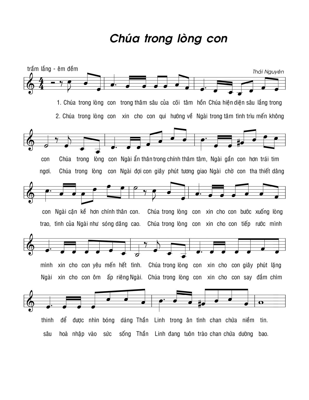 Lm. Thái Nguyên Chúa trong lòng con trong thâm sâu của cõi tâm hồn [PDF] [Sheet] [Lyrics] [Mp4/Midi]