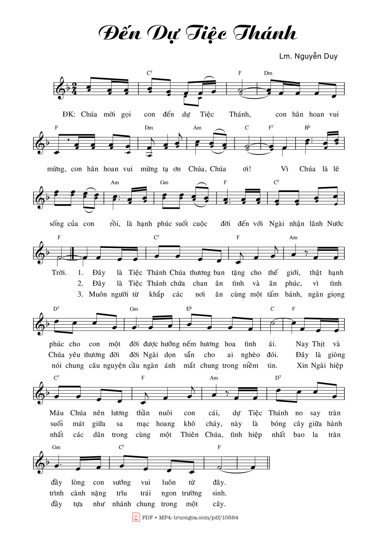Nguyễn Duy Chúa mời gọi con đến dự tiệc thánh con hân hoan vui mừng [PDF] [Sheet] [Lyrics] [Mp4/Midi]