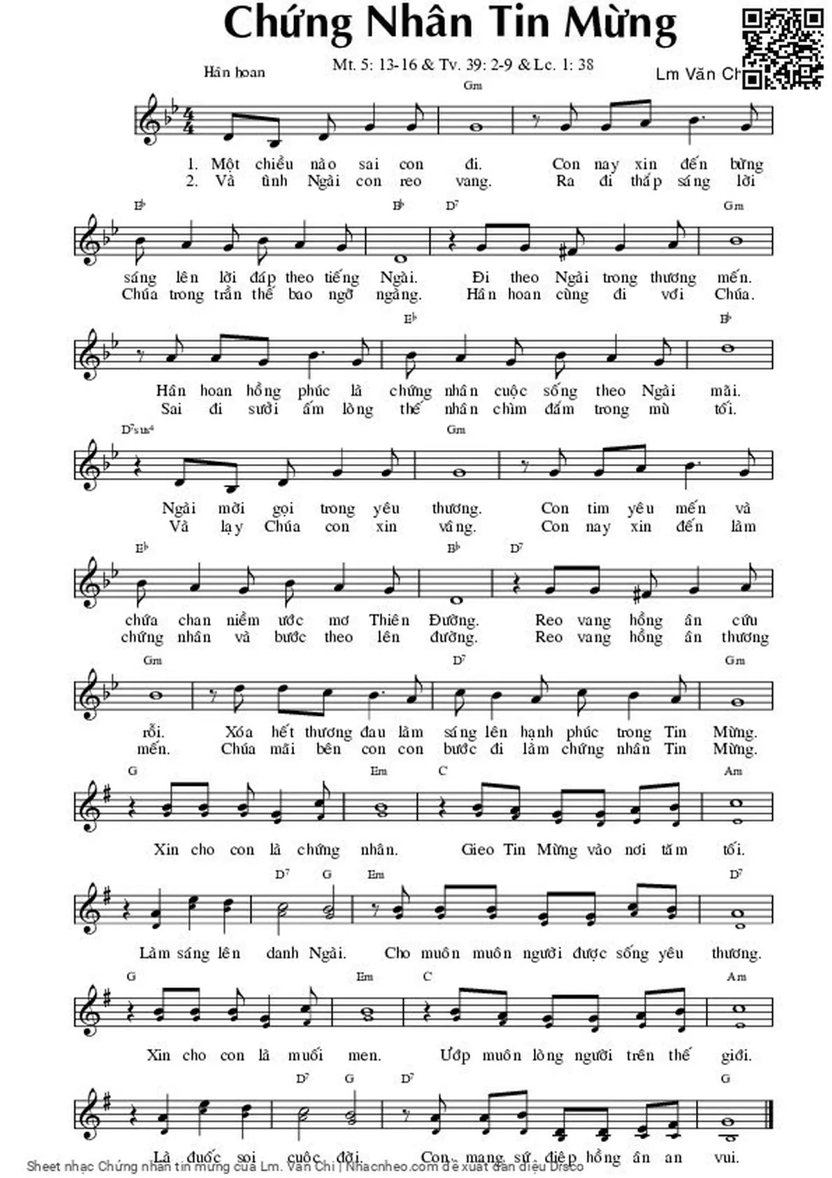 Sheet PDF with the same name Chứng nhân tin mừng: