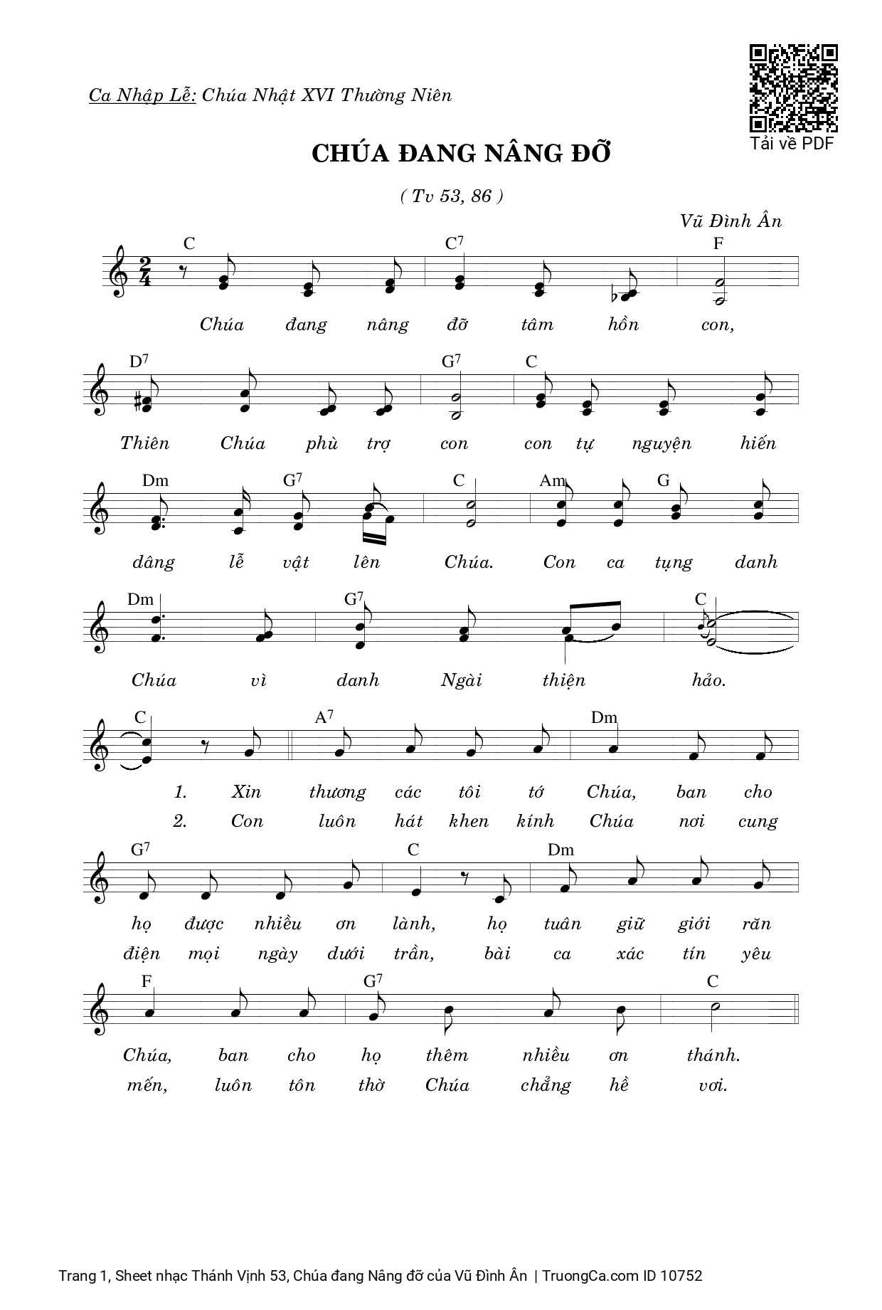 Vũ Đình Ân Nhập Lễ Chúa Nhật Thường Niên Chúa đang nâng đỡ tâm hồn con [PDF] [Sheet] [Lyrics] [Mp4/Midi]