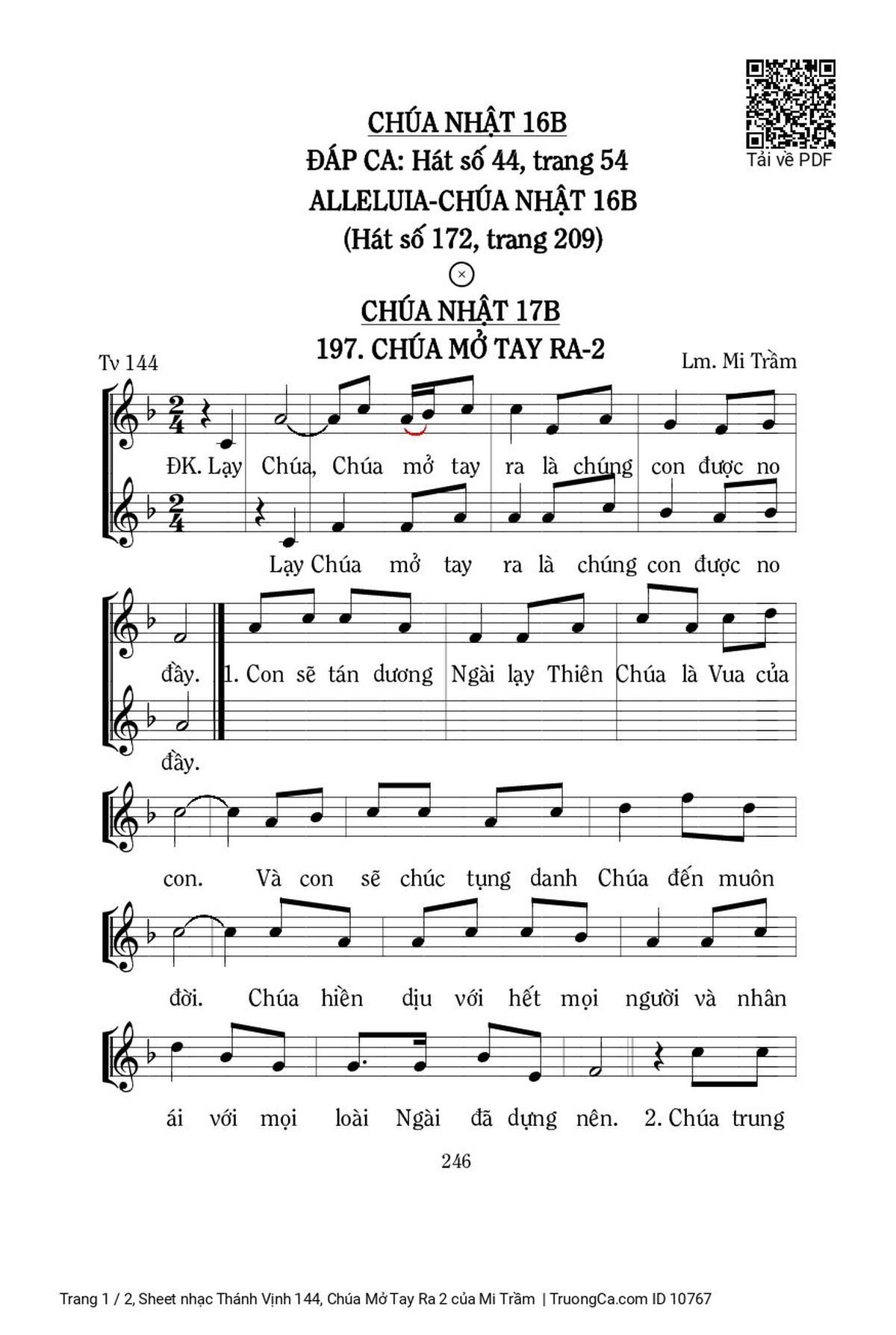 More similar sheets PDF Thánh Vịnh 144, Chúa Mở Tay Ra 2: