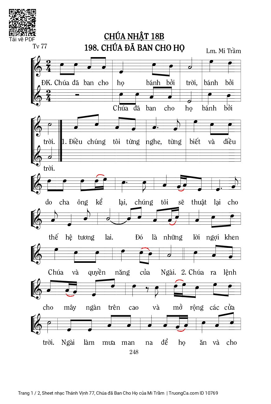 More similar sheets PDF Thánh Vịnh 77, Chúa đã Ban Cho Họ:
