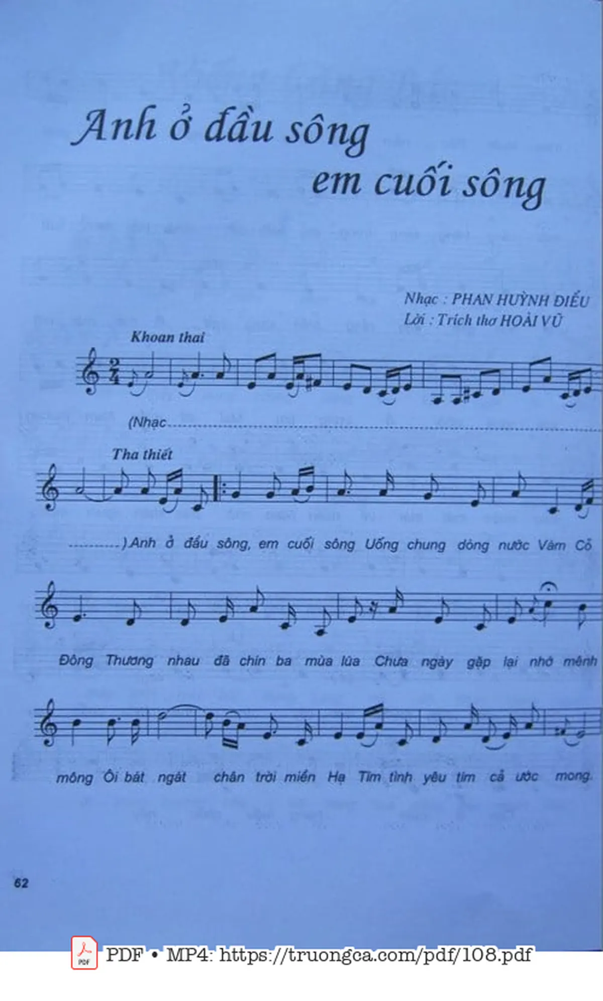 Phan Huỳnh Điểu Anh ở đầu sông em cuối sông Uống chung dòng nước Vàm Cỏ Đông [PDF] [Sheet] [Lyrics] [Mp4/Midi]