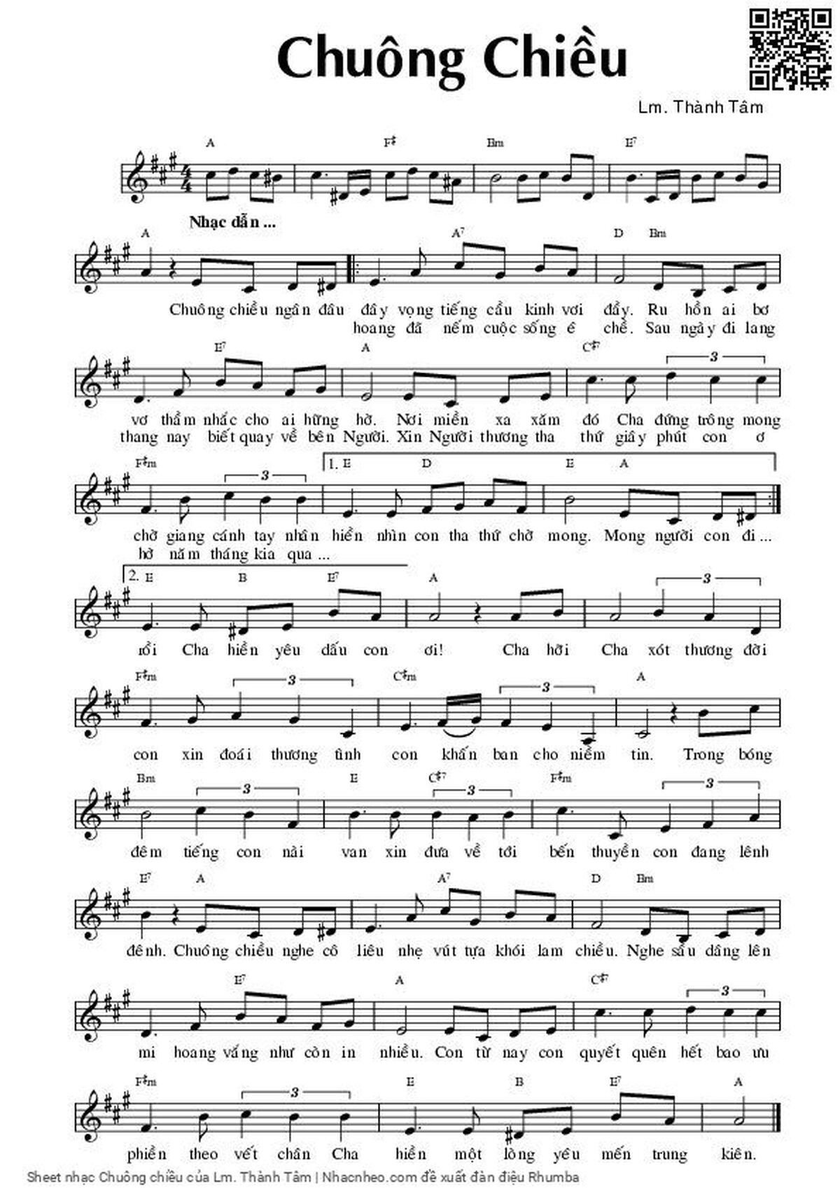 Transposition is the process of moving a song's melody and chords up or down in pitch by a constant interval. The direction of the transposition tool is indicated by a plus (+) sign for up and a minus (-) sign for down. Hover mouse over chords signs to see the chords chart of Chuông chiều song.