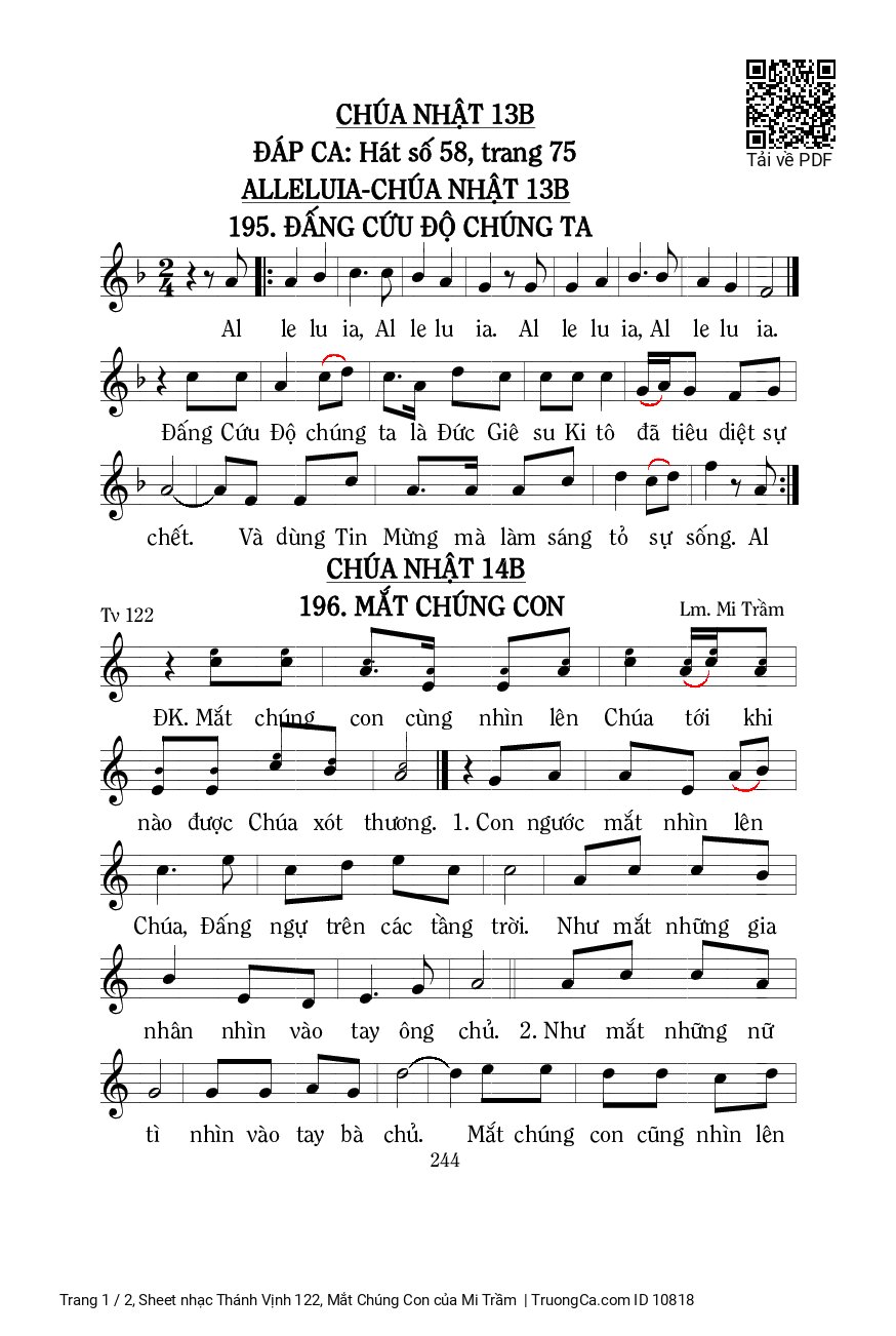 Sheet PDF with the same name Thánh Vịnh 122, Mắt Chúng Con:
