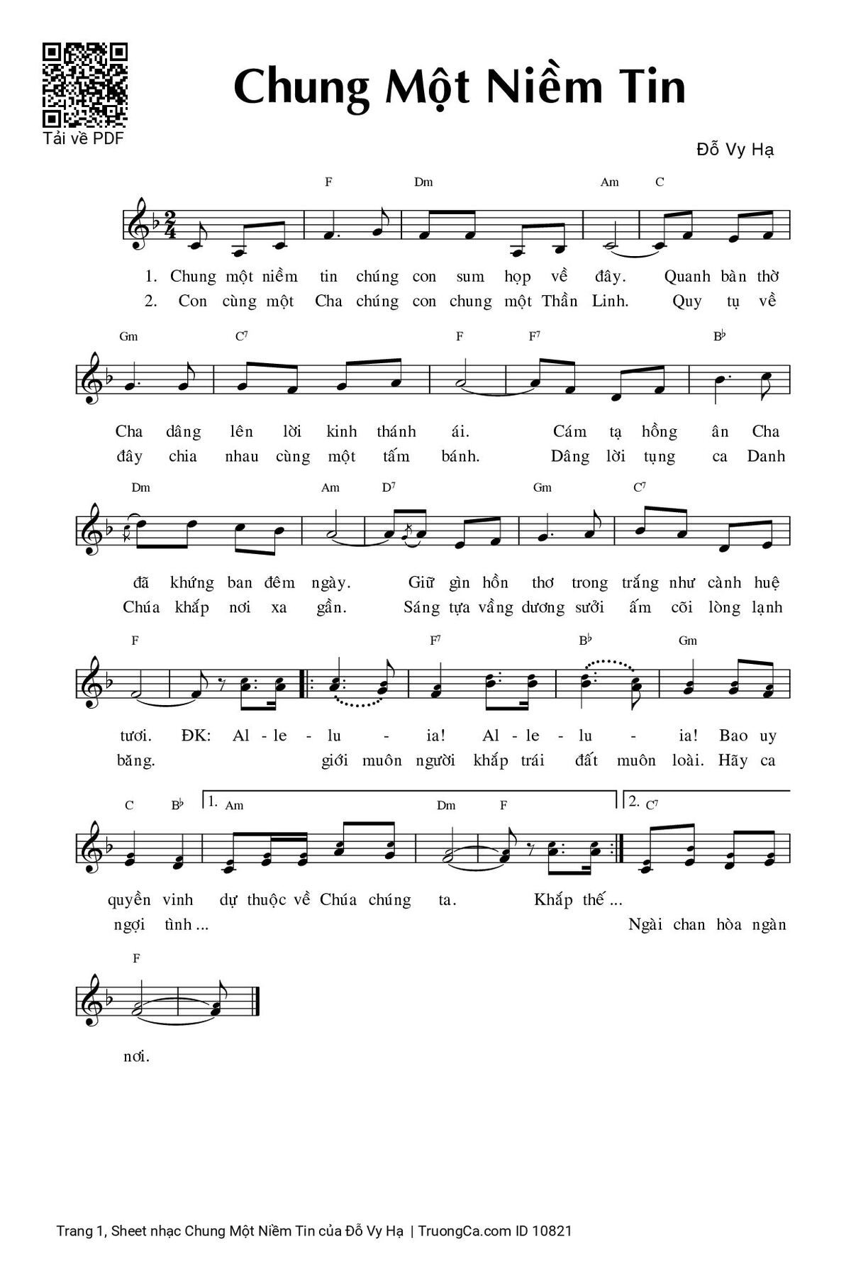 Sheet PDF with the same name Chung Một Niềm Tin: