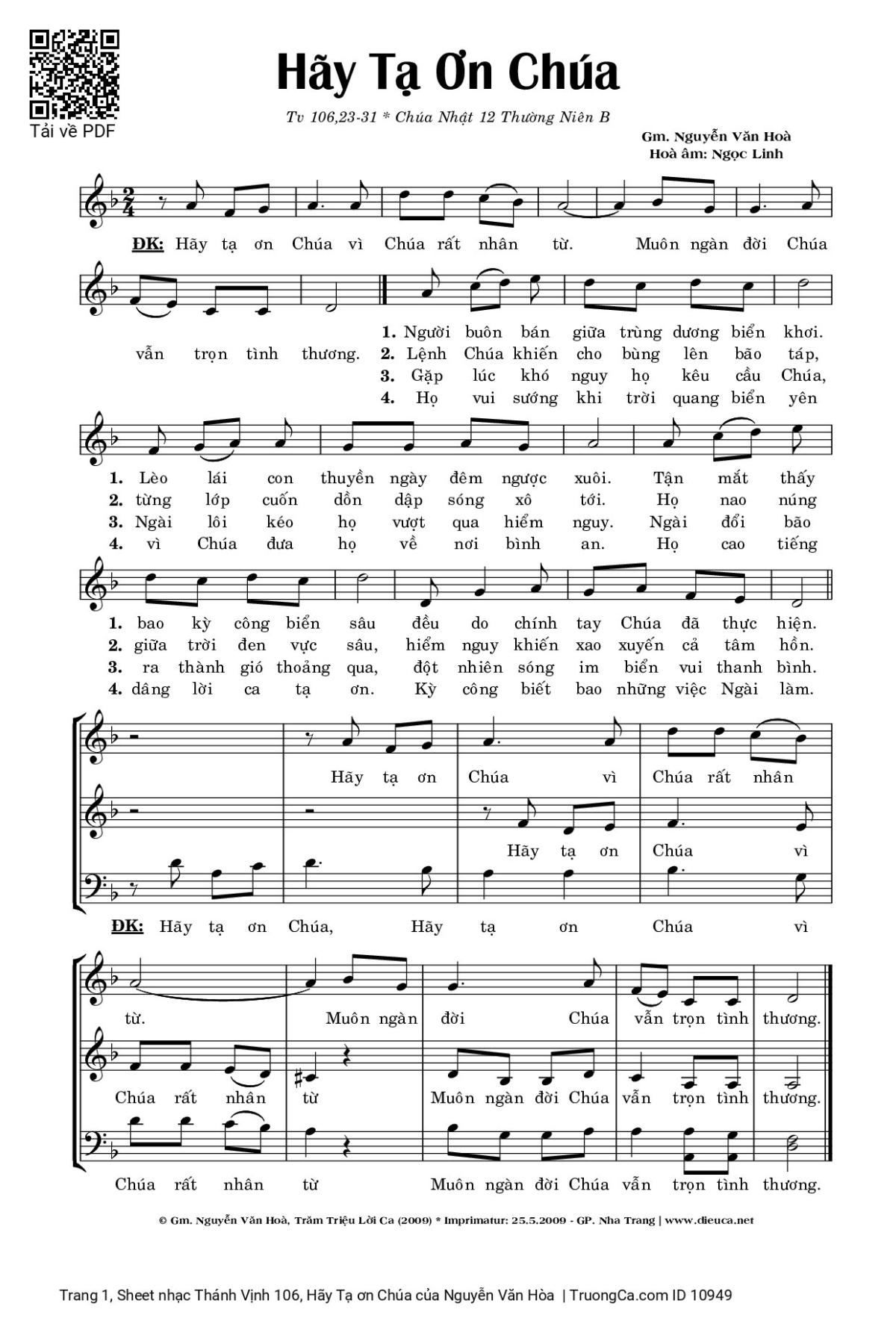 Sheet PDF with the same name Thánh Vịnh 106, Hãy Tạ ơn Chúa:
