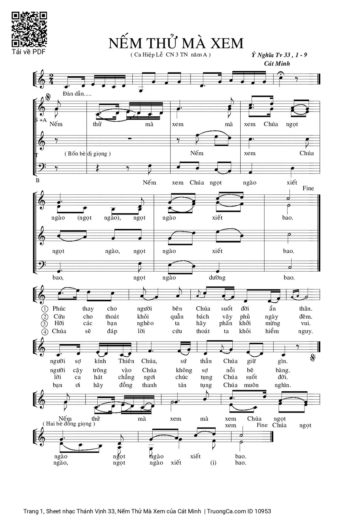 Cát Minh Nếm thử mà xem mà xem Chúa ngọt ngào ngọt ngào xiết bao [PDF] [Sheet] [Lyrics] [Mp4/Midi]