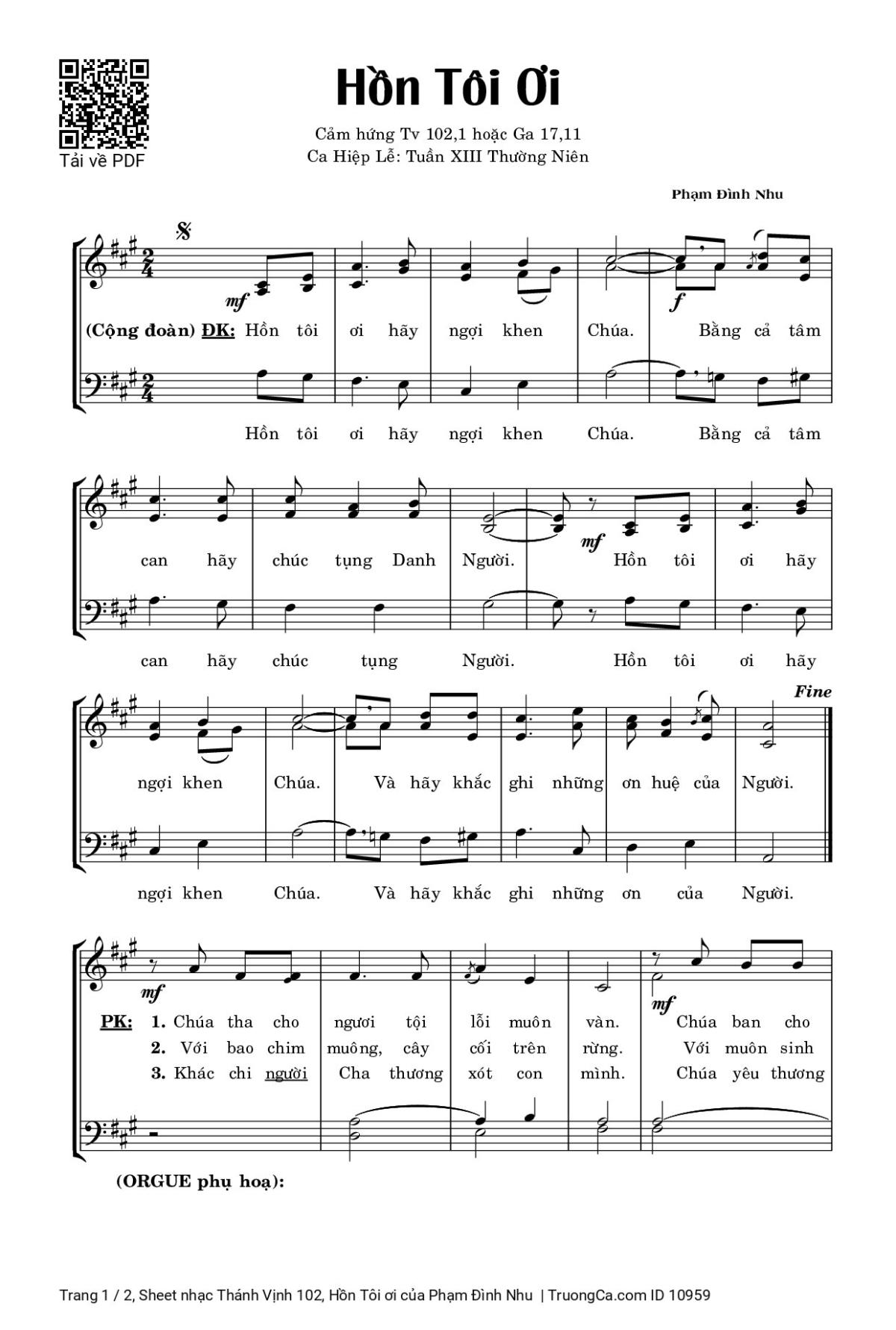 More similar sheets PDF Thánh Vịnh 102, Hồn Tôi ơi: