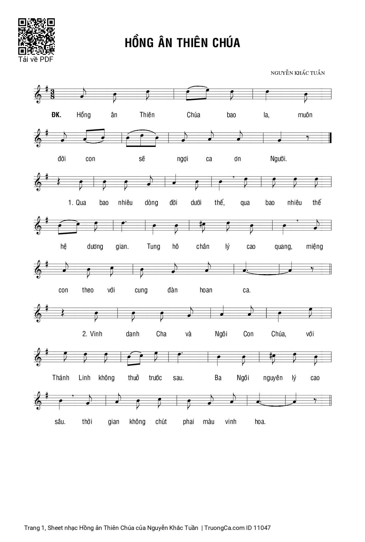 Nguyễn Khắc Tuần ÐK Hồng ân Thiên Chúa bao la muôn đời con sẽ ngợi ca ơn Người [PDF] [Sheet] [Lyrics] [Mp4/Midi]