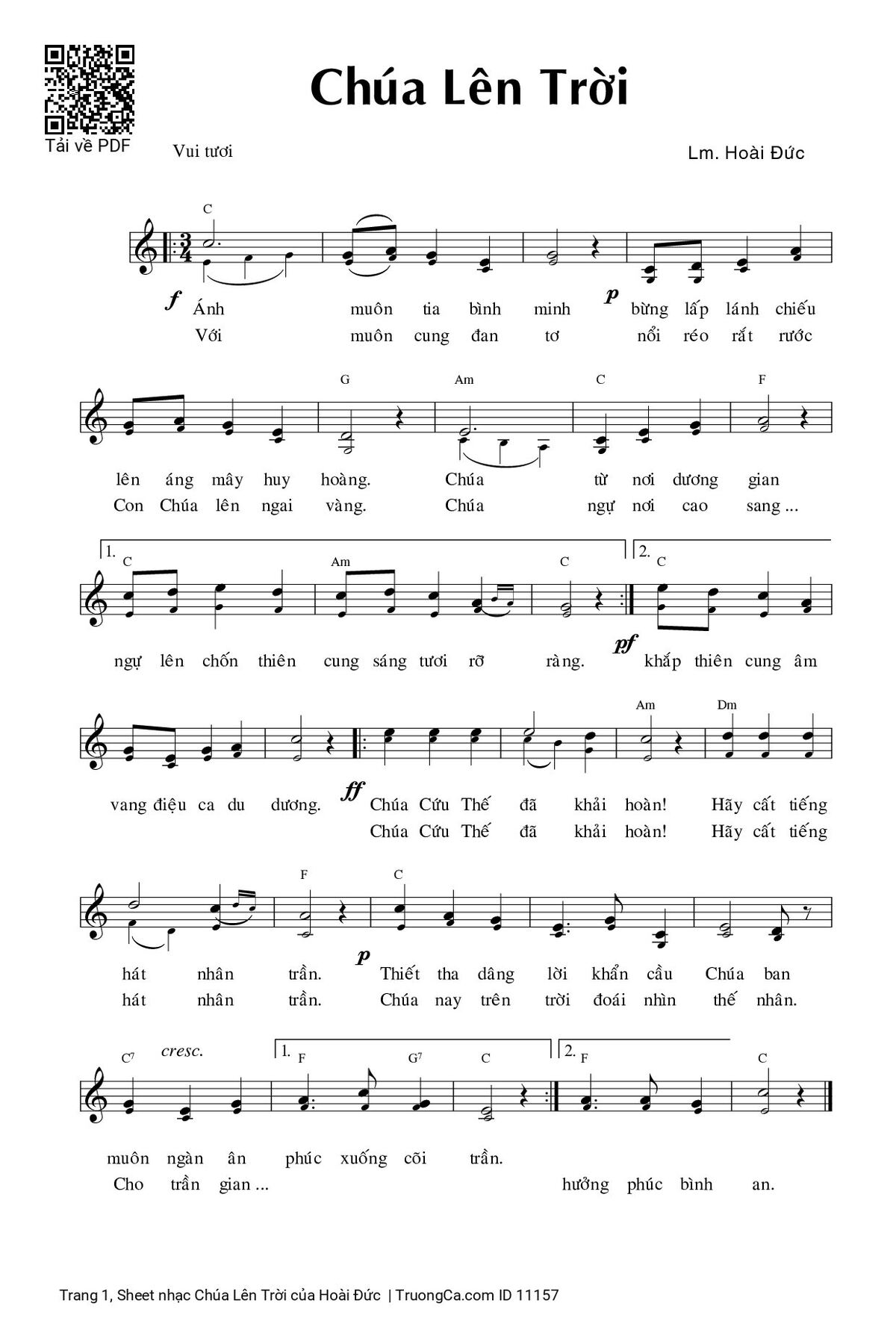 The Videos/audios Chúa Lên Trời by Hoài Đức were embed from Youtube, Musescore or the other 3rd links. Videos are subject to 3rd's copyright control and may be removed by YouTube's copyright rules and 3rd's policies or maybe included advertisements. If you cannot access to these songs, this mean that have been removed.