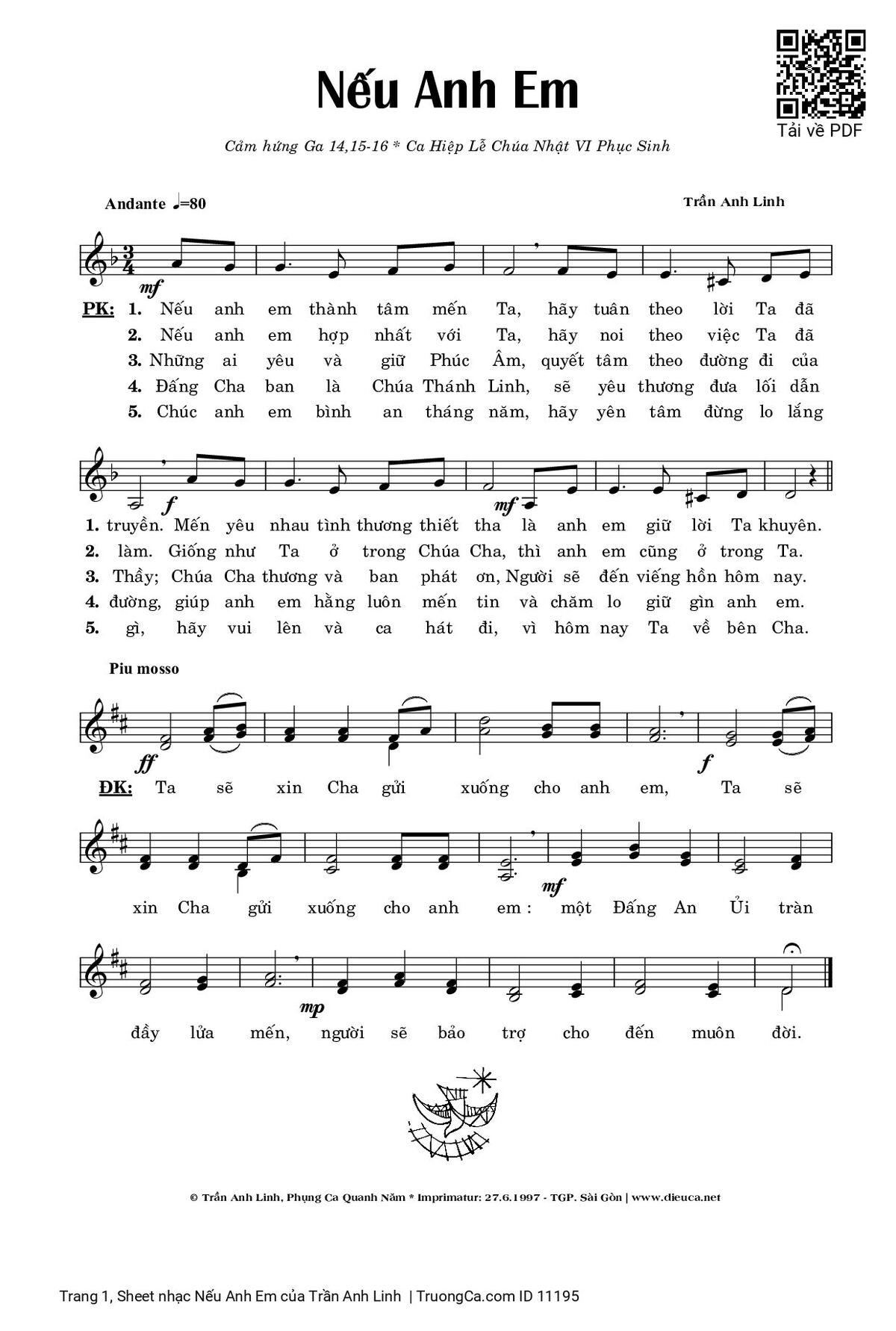 1. Nếu anh em thành tâm mến Ta, hãy tuân theo lời Ta đã truyền. Mến yêu nhau tình thương thiết tha là anh em giữ lời Ta khuyên.