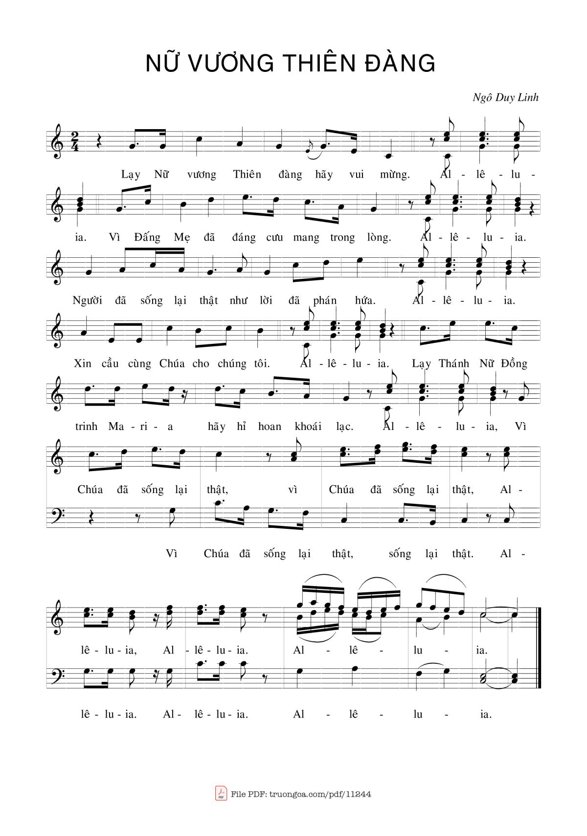 Ngô Duy Linh Lạy Nữ Vương Thiên Đàng hãy vui mừng Alleluia [PDF] [Sheet] [Lyrics] [Mp4/Midi]