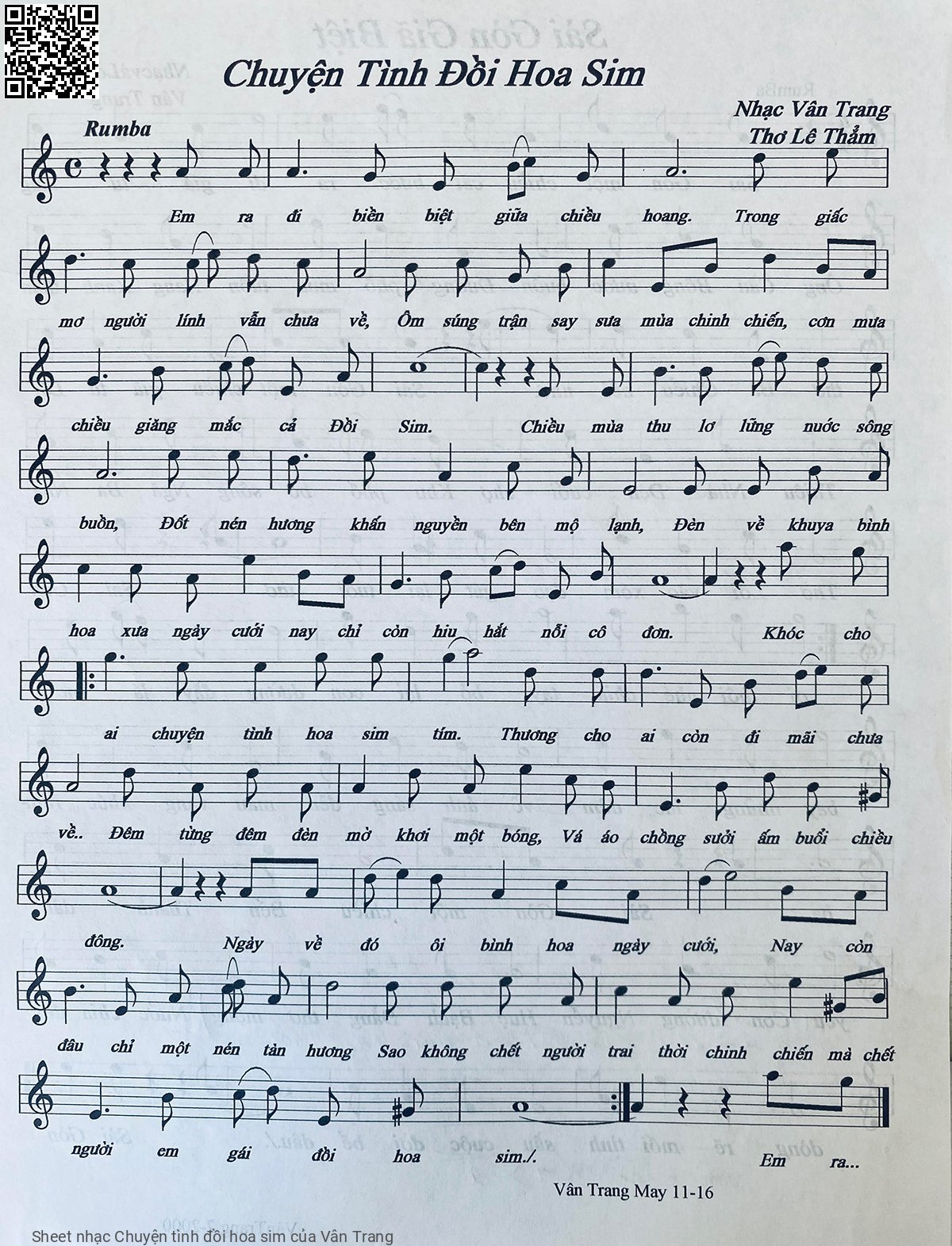 Vân Trang Em ra đi biền biệt giữa chiều hoang Trong giấc mơ người lính vẫn chưa về [PDF] [Sheet] [Lyrics] [Mp4/Midi]