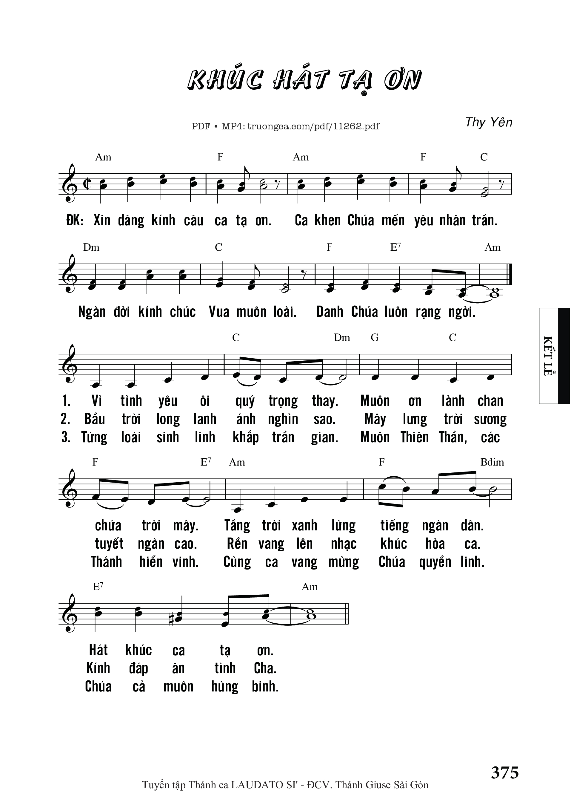 Thy Yên Xin dâng kính câu ca tạ ơn Ca khen Chúa mến yêu nhân trần [PDF] [Sheet] [Lyrics] [Mp4/Midi]