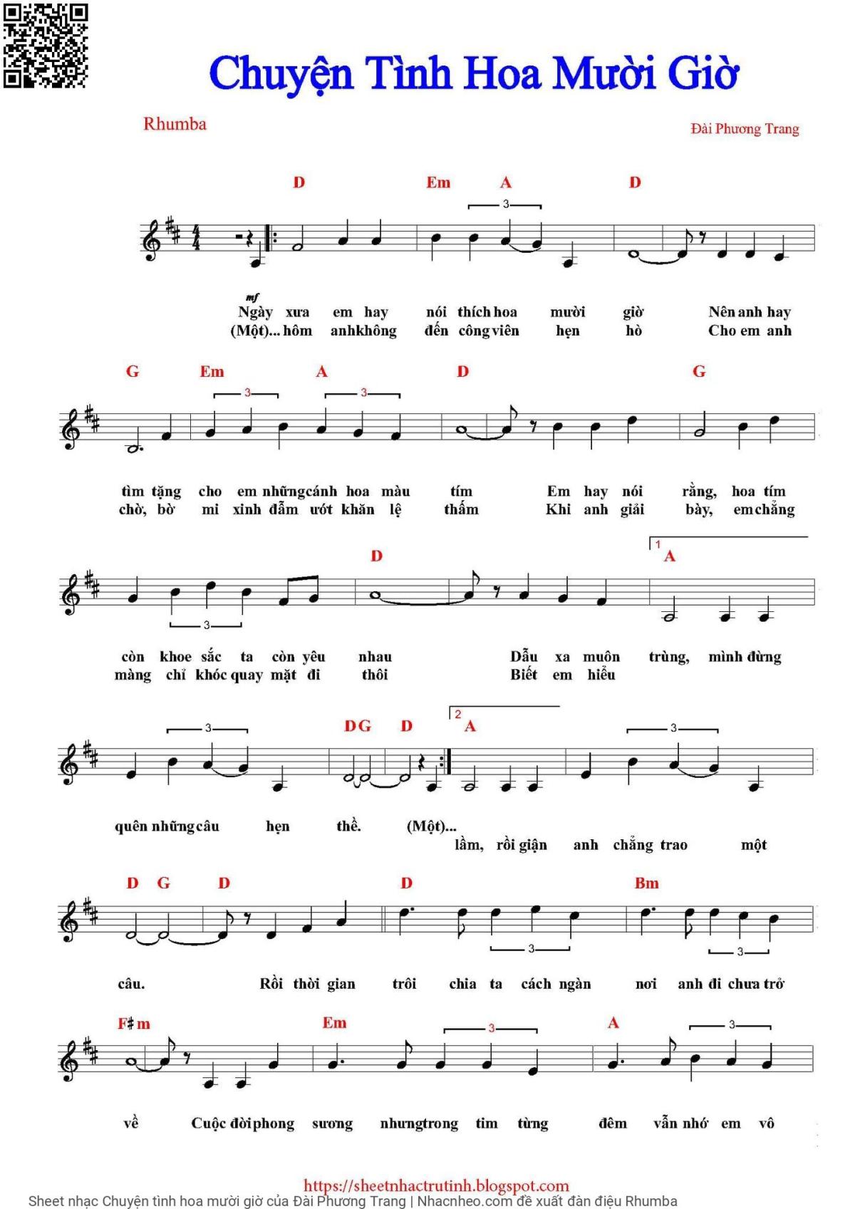 Đài Phương Trang Ngày xưa em hay nói thích hoa mười giờ [PDF] [Sheet] [Lyrics] [Mp4/Midi]