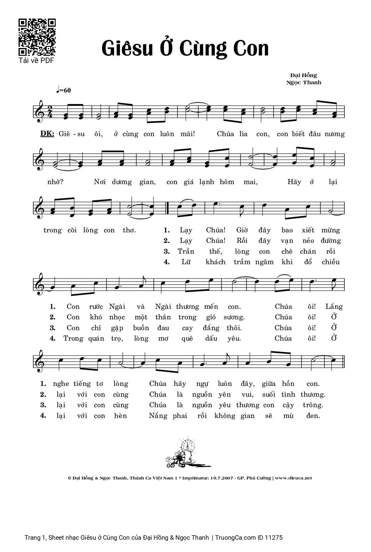 Đại Hồng & Ngọc Thanh ÐK Giêsu ơi ở cùng con luôn mãi Chúa lìa con [PDF] [Sheet] [Lyrics] [Mp4/Midi]