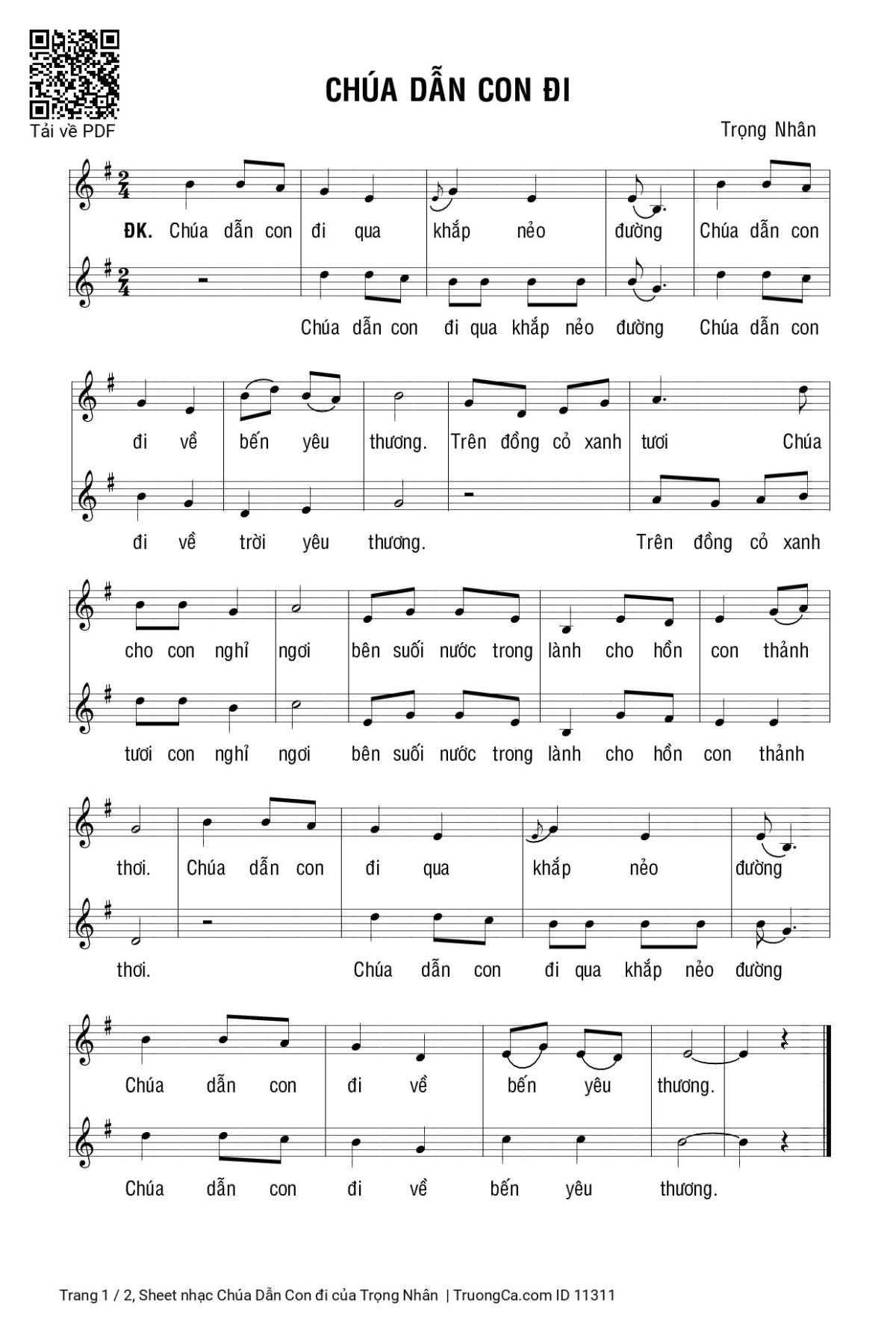Điệp khúc. Chúa dẫn con đi qua khắp nẻo đường, Chúa dẫn con đi về bến yêu thương. Trên đồng cỏ xanh tươi, Chúa cho con nghỉ ngơi bên suối nước trong lành, cho hồn con thảnh thơi. Chúa dẫn con đi qua khắp nẻo đường, Chúa dẫn con đi về bến yêu thương.
