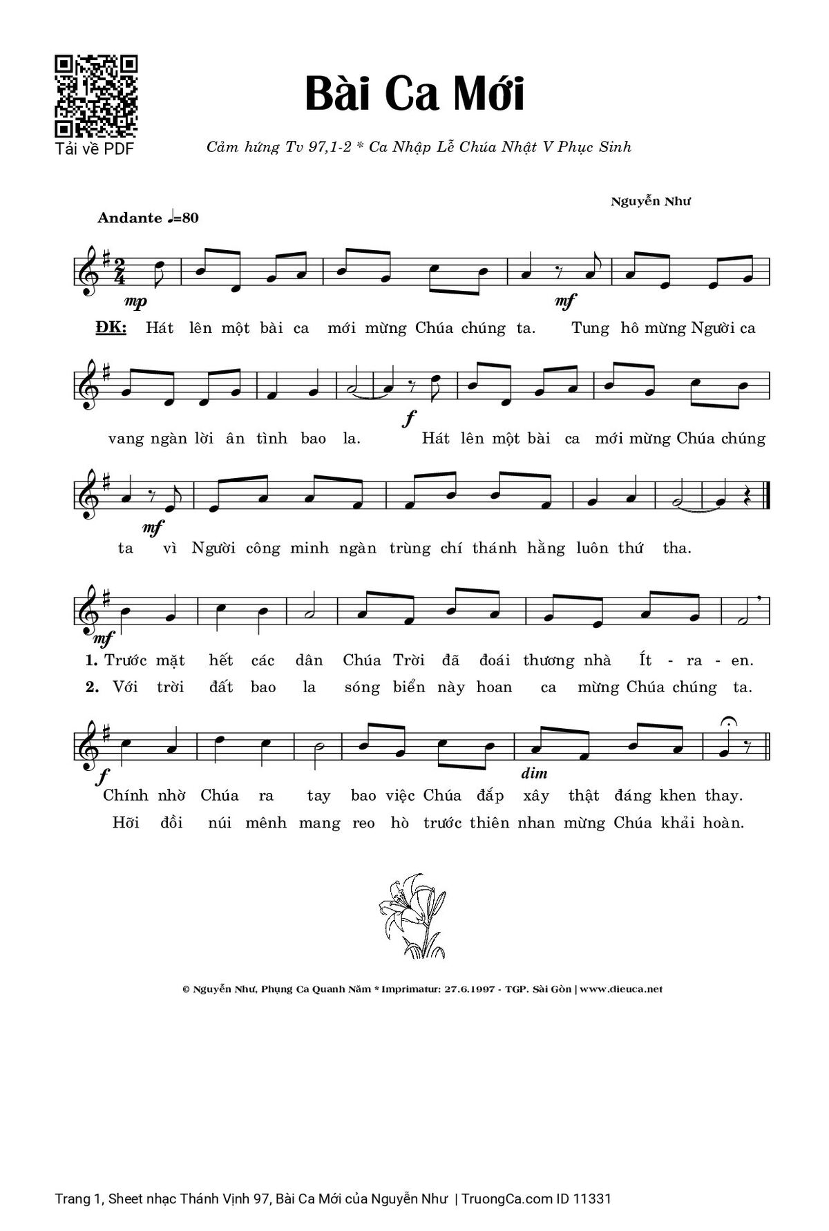 Sheet PDF with the same name Thánh Vịnh 97, Bài Ca Mới:
