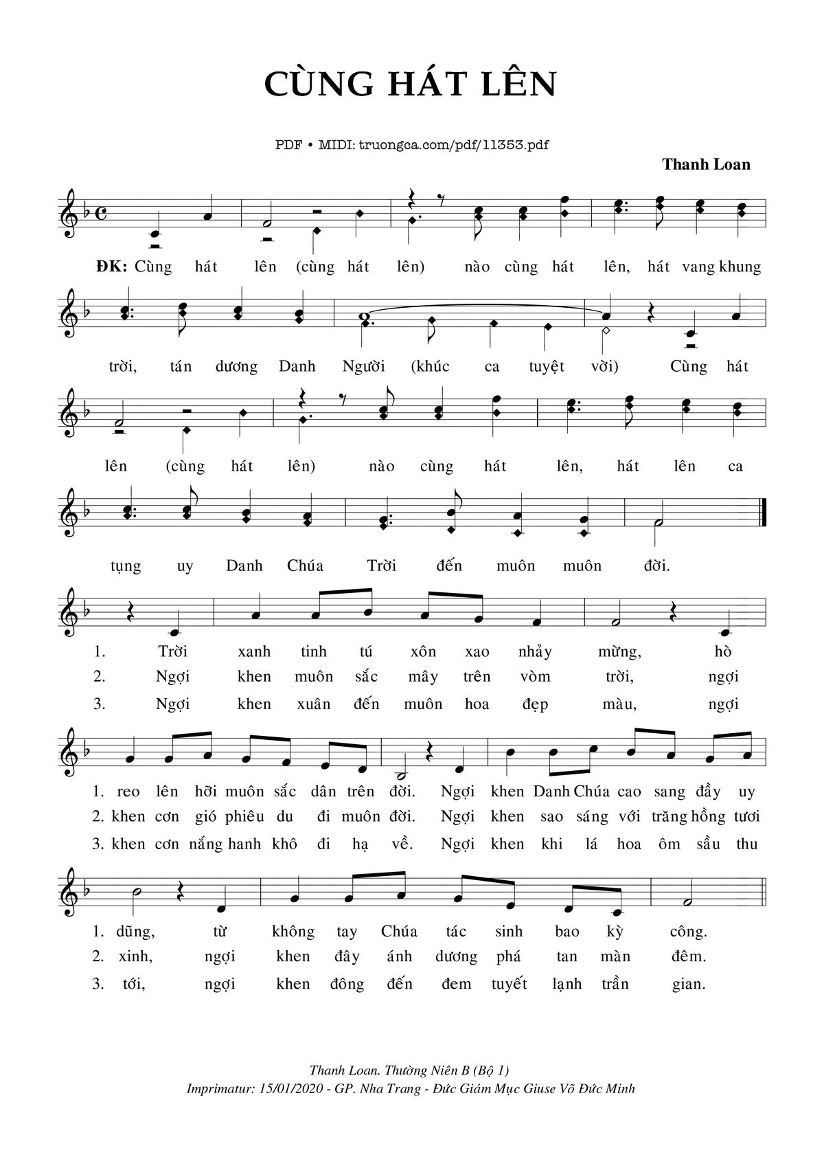Thanh Loan Cùng hát lên nào cùng hát lên hát vang khung trời [PDF] [Sheet] [Lyrics] [Mp4/Midi]