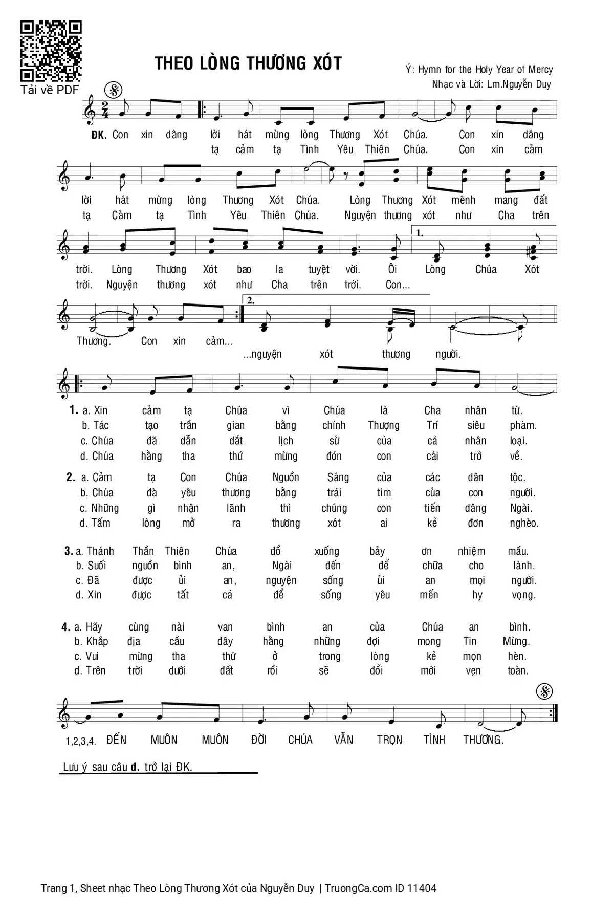 Nguyễn Duy Con xin dâng lời hát mừng Lòng Thương Xót Chúa [PDF] [Sheet] [Lyrics] [Mp4/Midi]