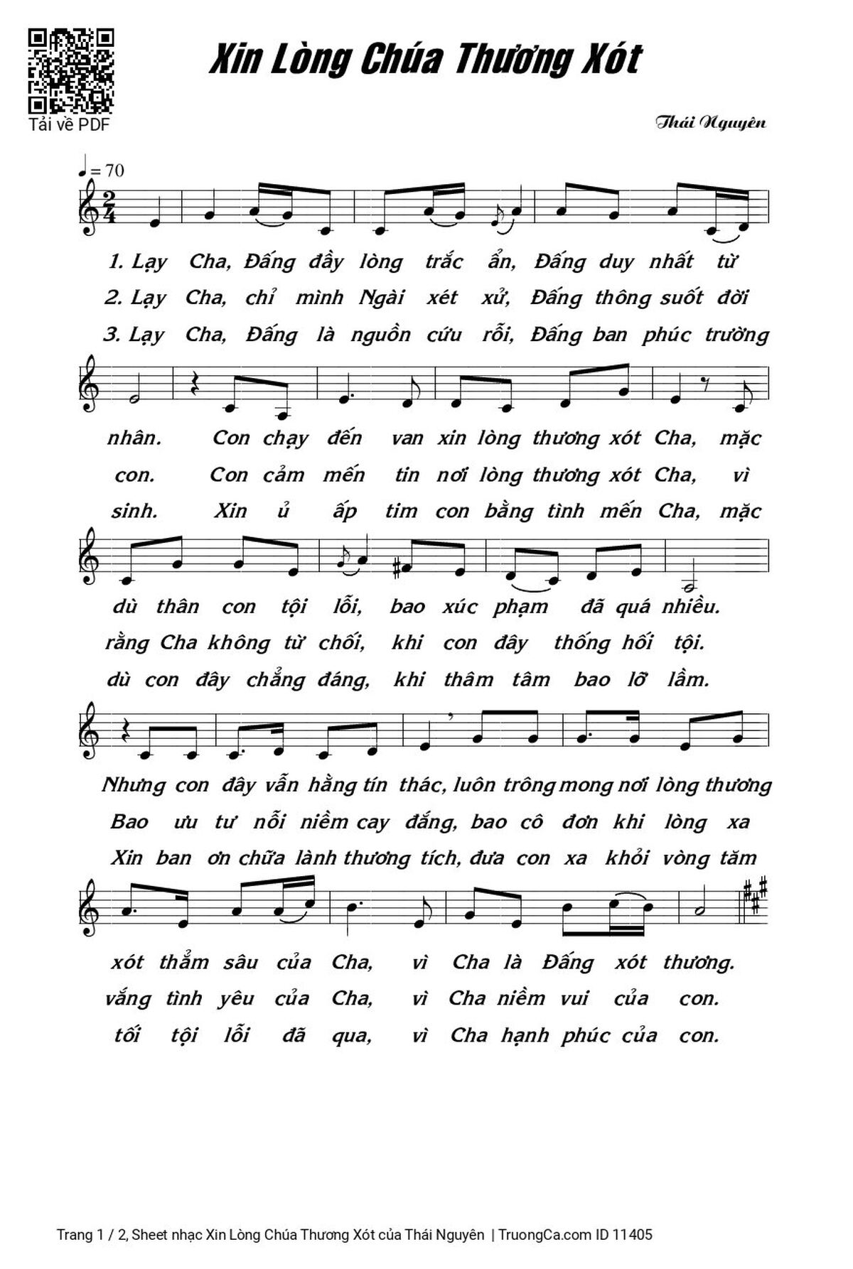 Thái Nguyên Lạy Cha Đấng đầy lòng trắc ẩn Đấng duy nhất từ nhân [PDF] [Sheet] [Lyrics] [Mp4/Midi]