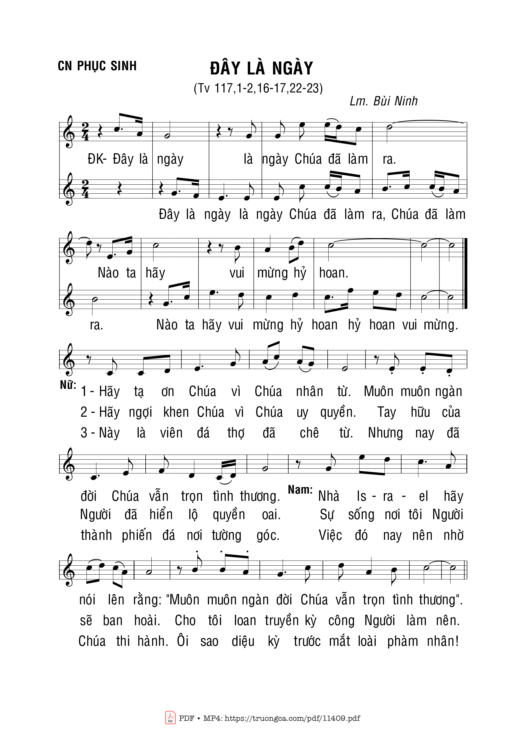 Bùi Ninh Chúa Nhật Phục Sinh Đây là ngày là ngày Chúa đã làm ra [PDF] [Sheet] [Lyrics] [Mp4/Midi]