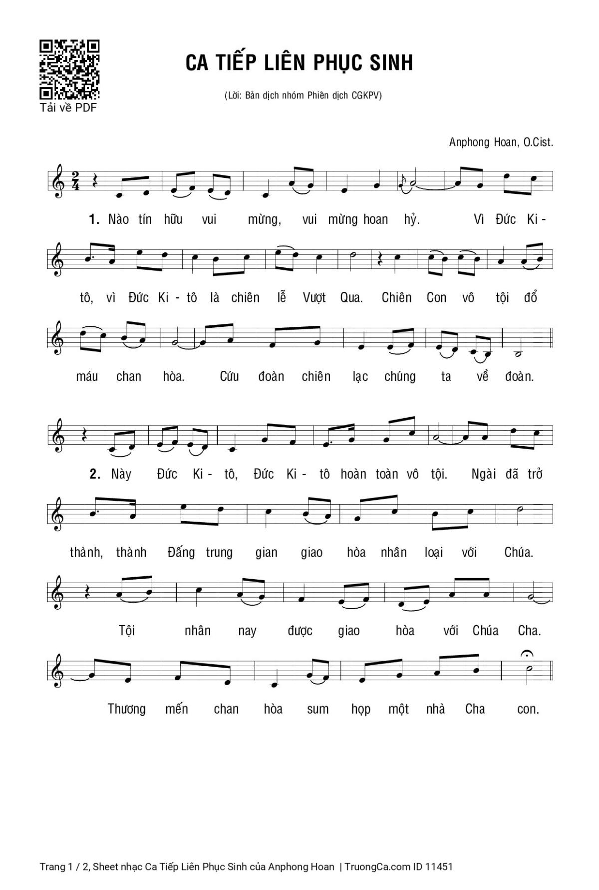 Sheet PDF with the same name Ca Tiếp Liên Phục Sinh: