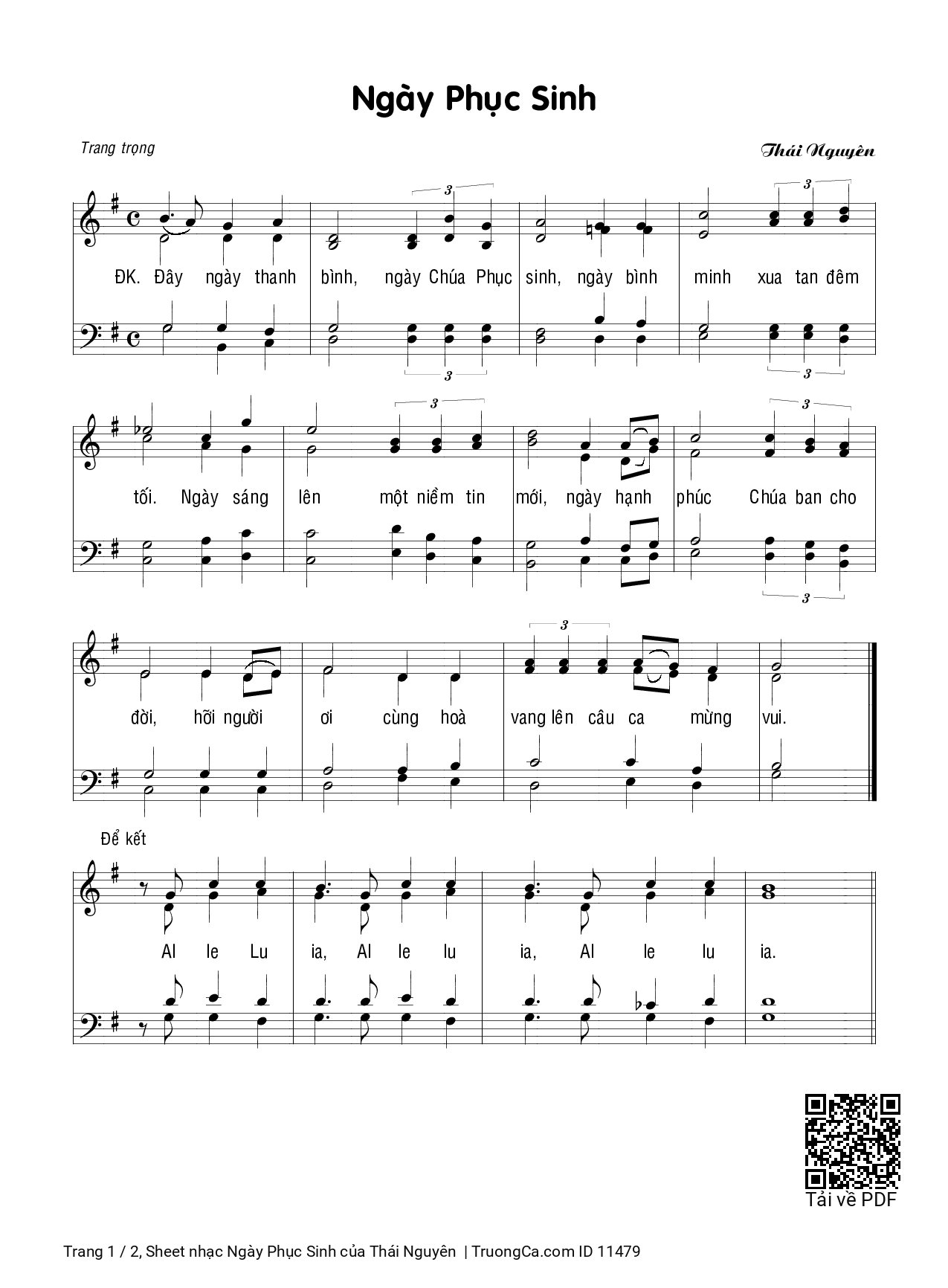 Thái Nguyên Ôi ngày thanh bình ngày Chúa phục sinh ngày bình minh xua tan đêm tối [PDF] [Sheet] [Lyrics] [Mp4/Midi]