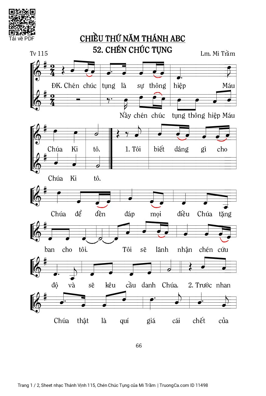 Sheet PDF with the same name Thánh Vịnh 115, Chén Chúc Tụng: