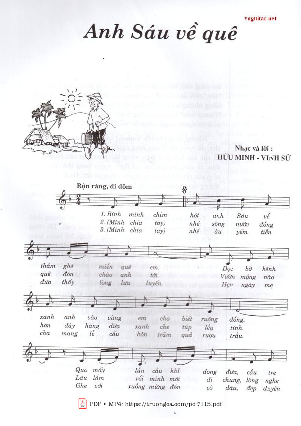 Hữu Minh Bình minh nắng sớm anh Sáu về thăm ghé miền quê em [PDF] [Sheet] [Lyrics] [Mp4/Midi]
