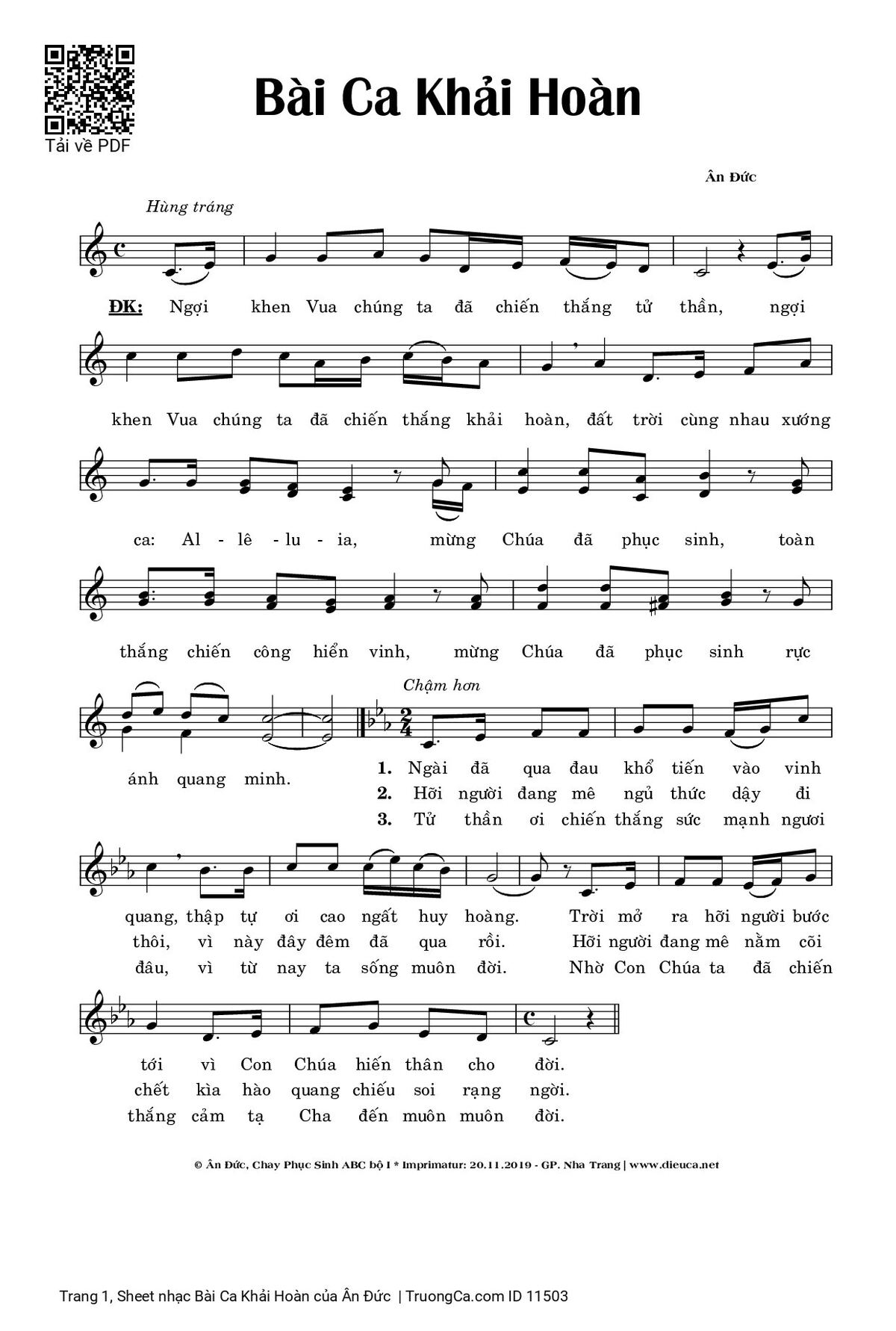 Ân Đức Ngợi khen Vua chúng ta đã chiến thắng tử thần [PDF] [Sheet] [Lyrics] [Mp4/Midi]