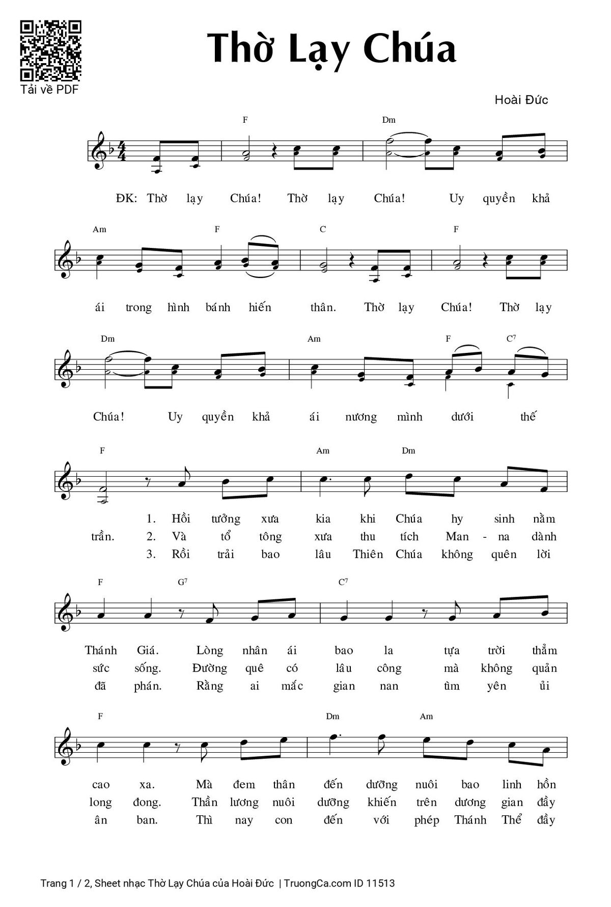 Hoài Đức Thờ lạy Chúa Thờ lạy Chúa Uy quyền khả ái trong hình bánh hiến thân [PDF] [Sheet] [Lyrics] [Mp4/Midi]