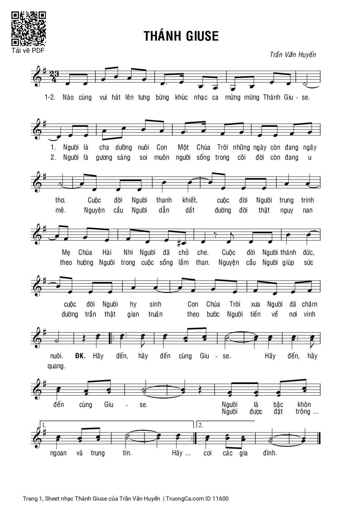 1. Nào cùng vui hát lên tưng bừng khúc nhạc ca mừng mừng thánh Giuse. Người là cha dưỡng nuôi Con Một Chúa Trời những ngày còn đang ngây thơ. Cuộc đời Người thanh khiết, cuộc đời Người trung trinh. Mẹ Chúa Hài Nhi, Người đã chở che. Cuộc đời Người thánh đức, cuộc đời Người hy sinh. Con Chúa Trời xưa, Người đã chăm nuôi.