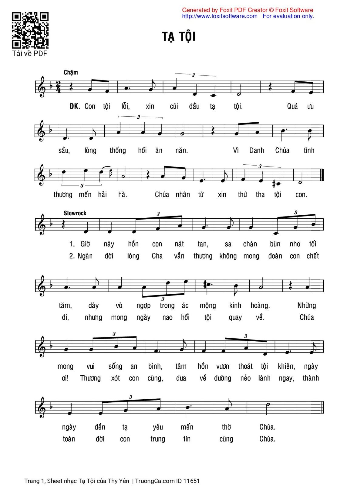 More similar sheets PDF Tạ Tội: